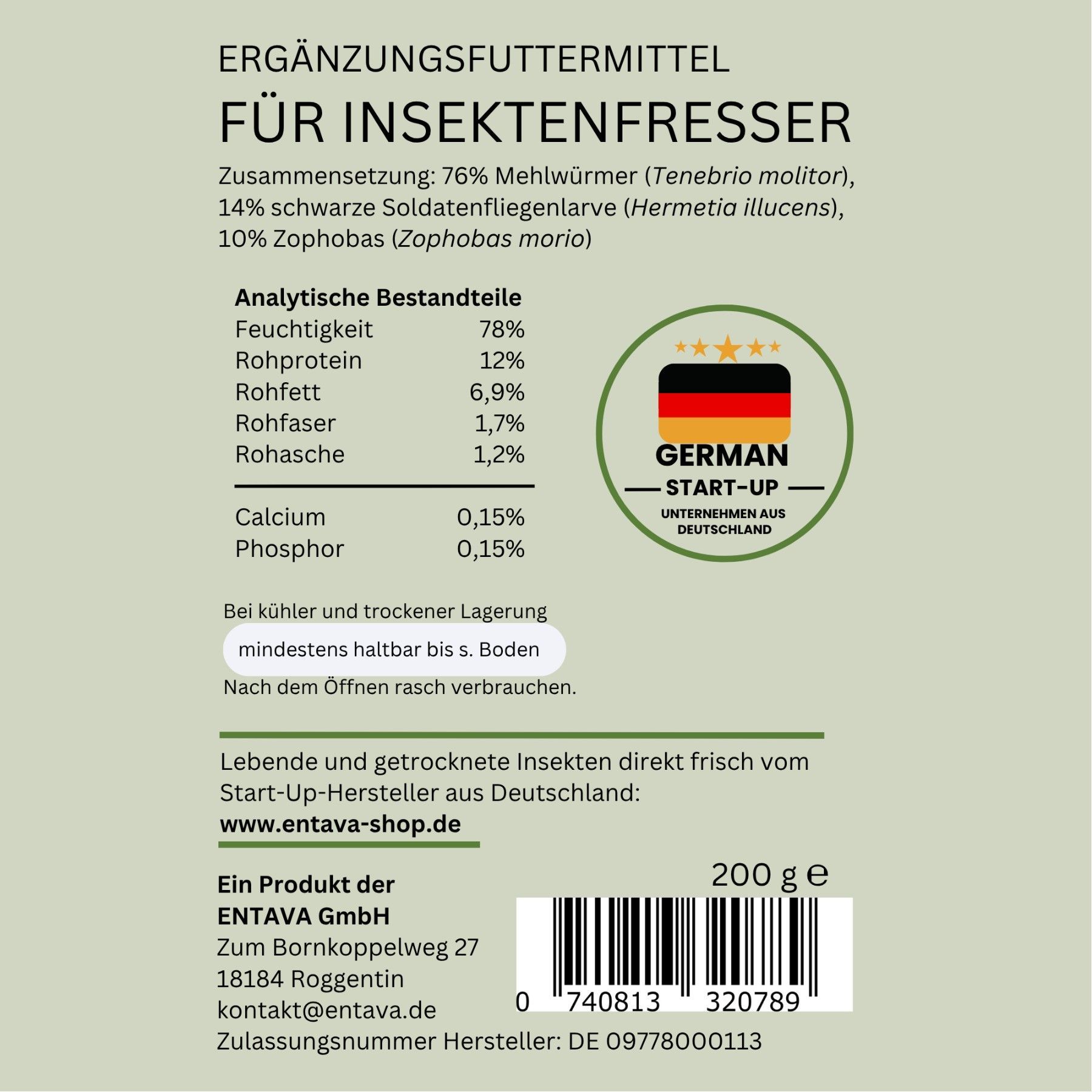 ENTAVA Frisches Insektenpüree 200g Dose (18er Pack) 100% Insekten, Igel-, Vogelfutter