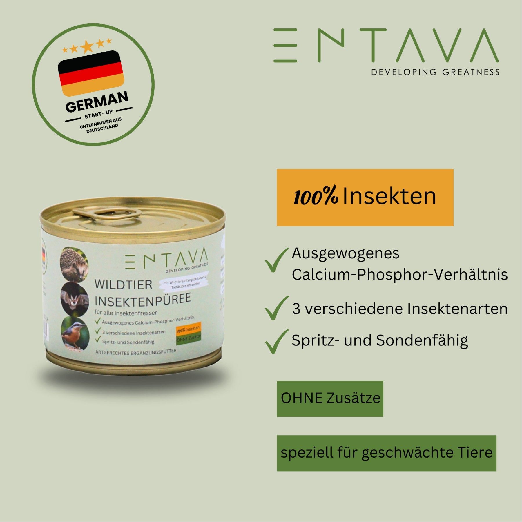 ENTAVA Frisches Insektenpüree 200g Dose (6er Pack) 100% Insekten, Igel-, Vogelfutter