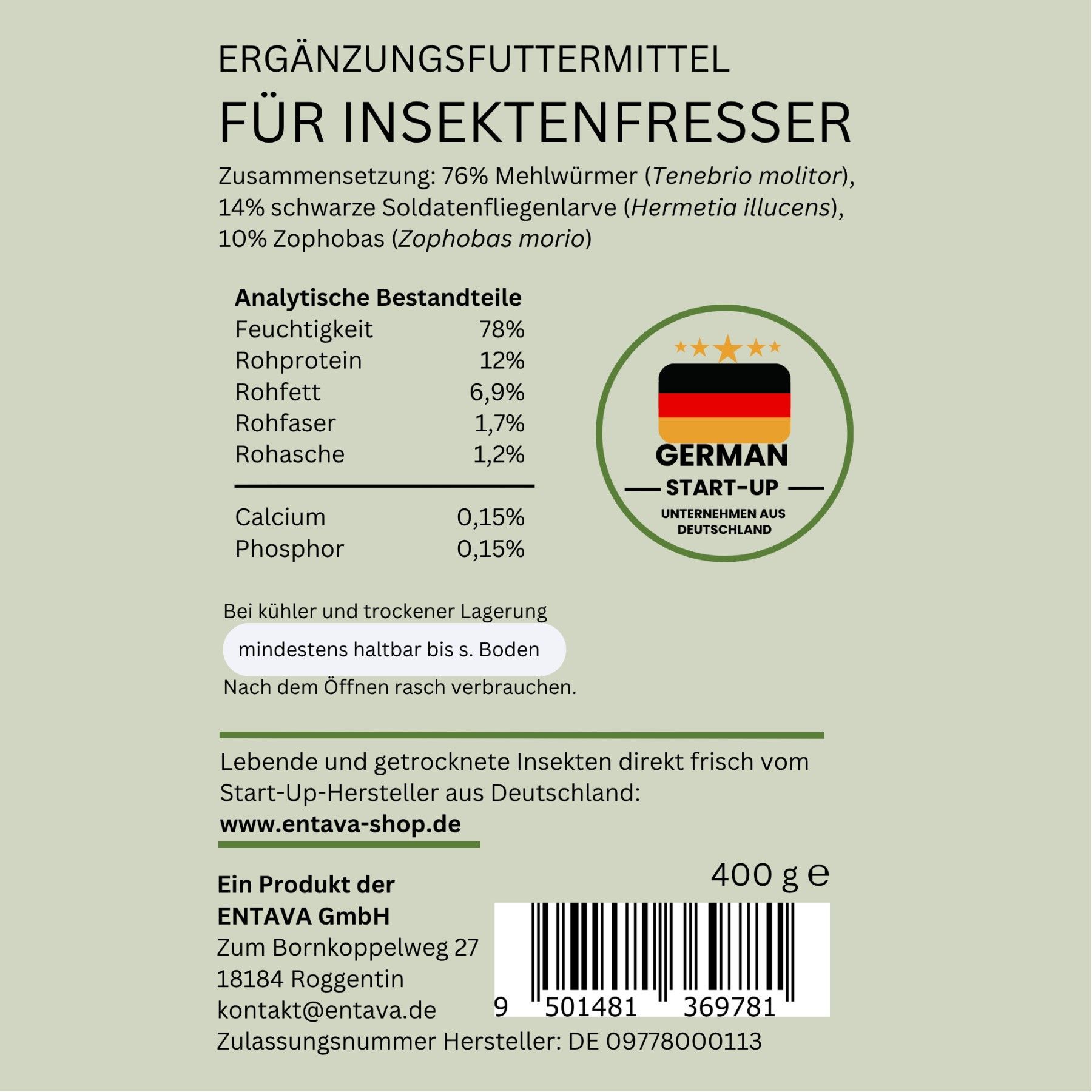 ENTAVA Frisches Insektenpüree 400g Dose (6er Pack) 100% Insekten, Igel-, Vogelfutter