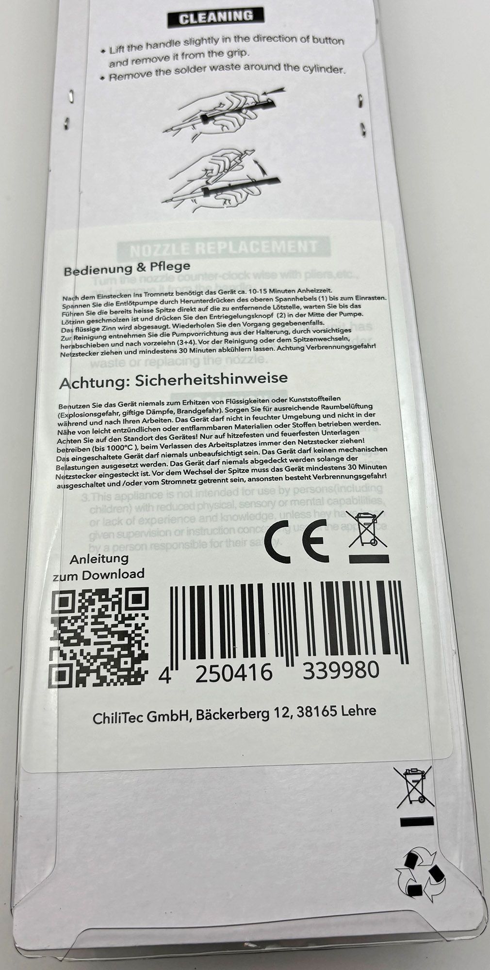 ChiliTec Entlötpumpe "CT-EH 40" mit Heizung 230V, 40Watt, 1,25m Kabel