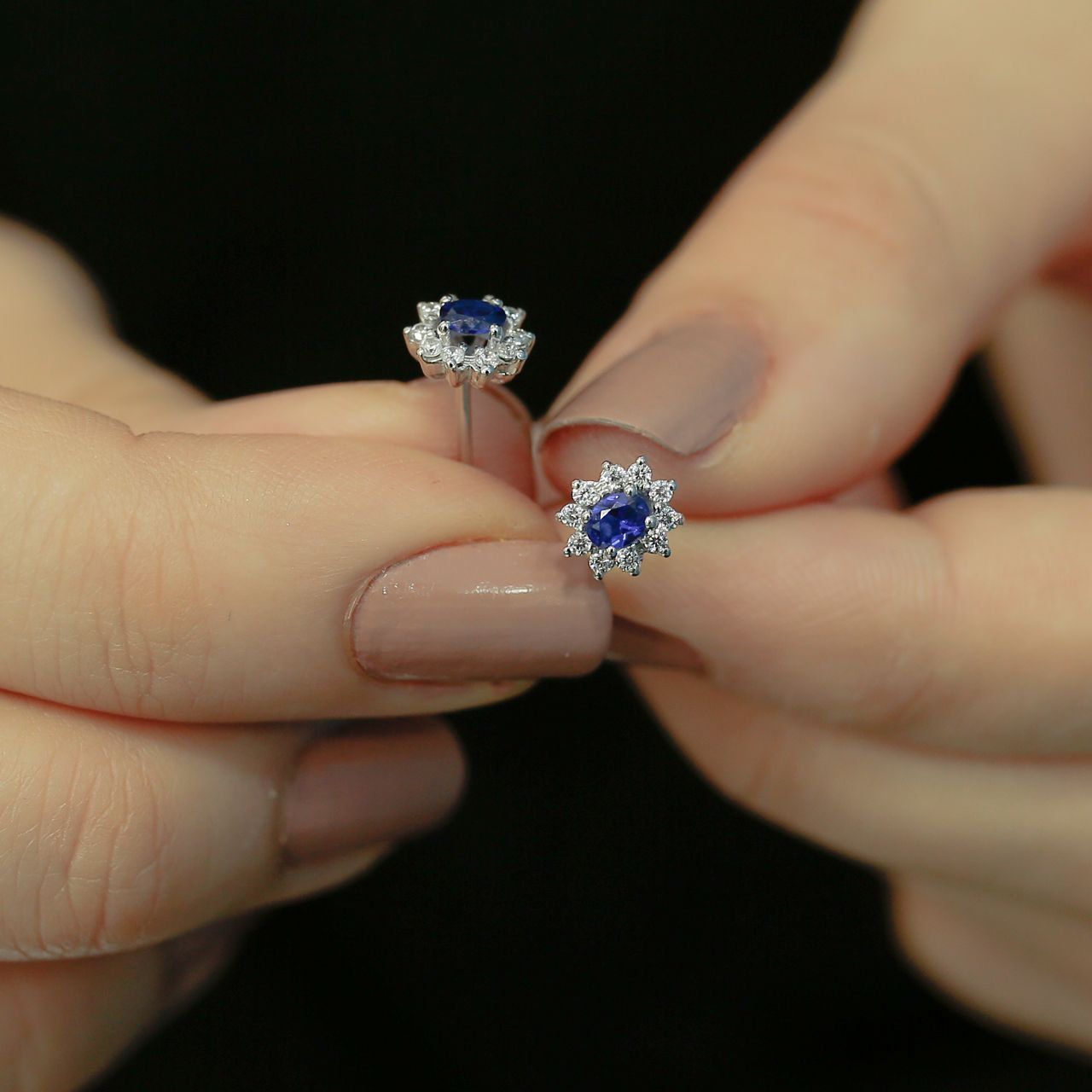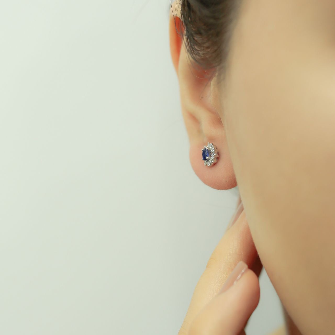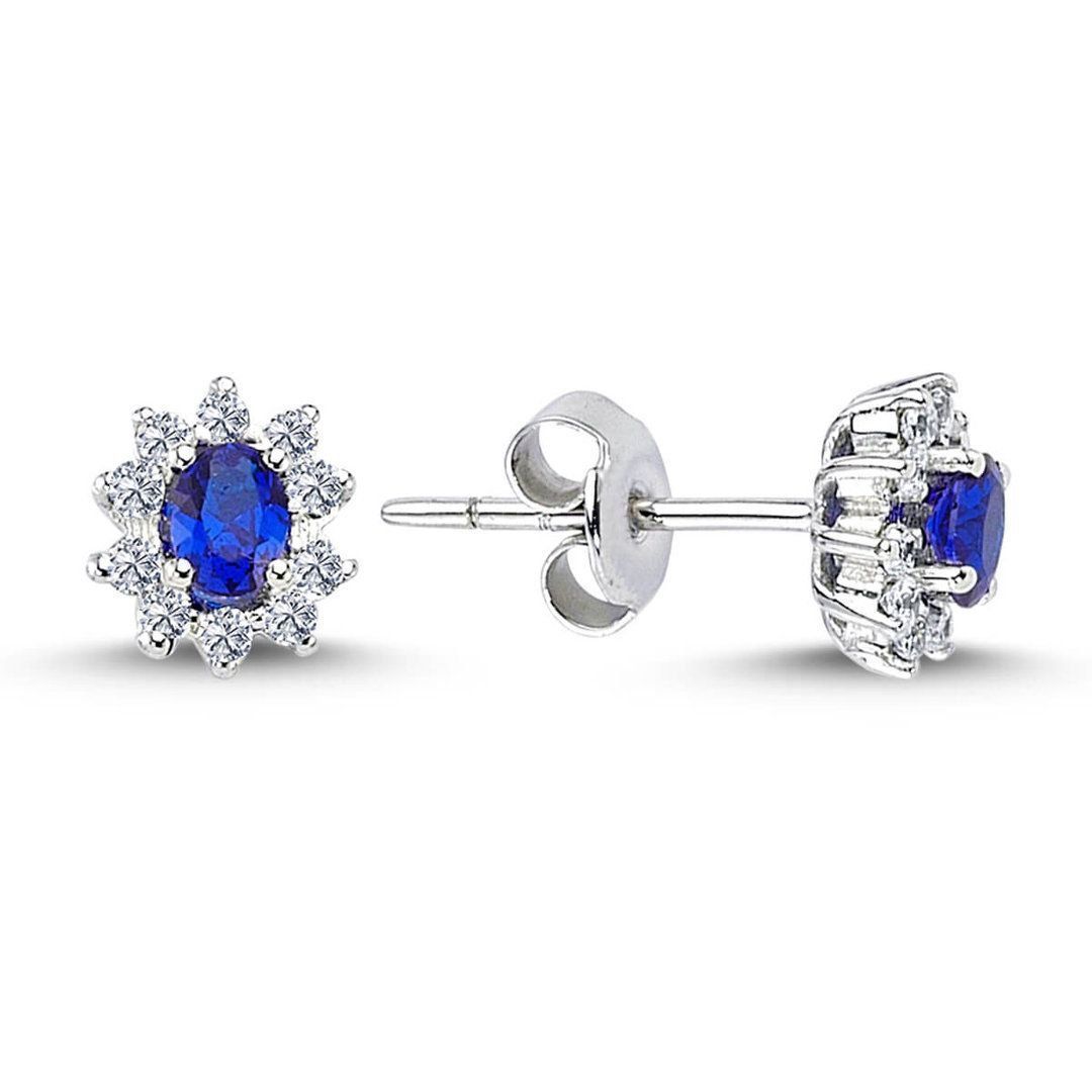Entourage Diamant Oval Saphir Ohrringe Ohrstecker Vintage Style in 585`er Weißgold