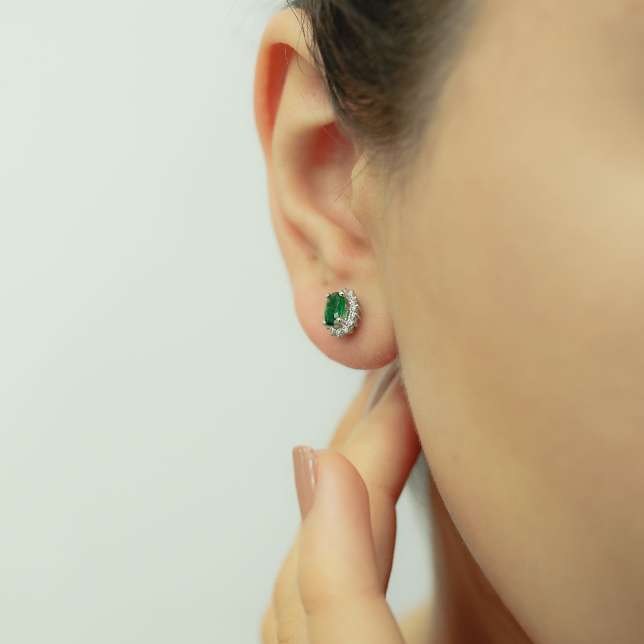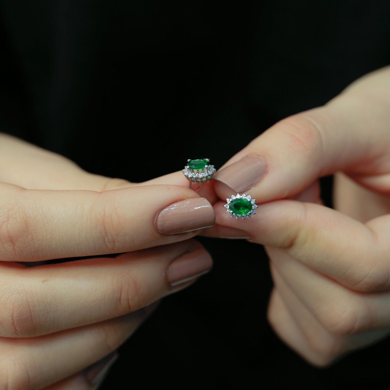 Entourage Diamant Oval Smaragd Ohrstecker Ohrringe in 14 Karat Weißgold