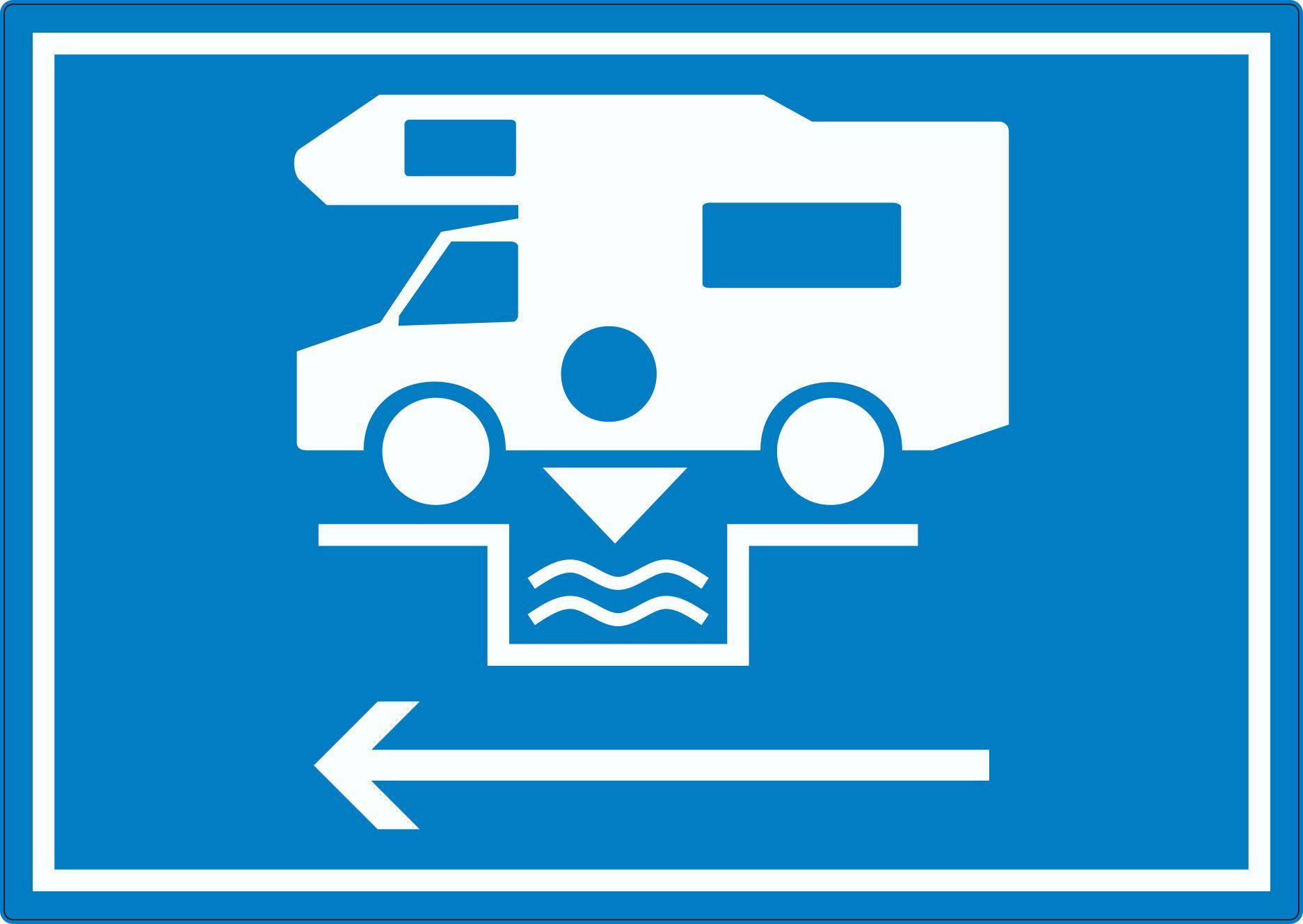 Entsorgungsstation Chemietoilette mit Pfeil nach links Aufkleber