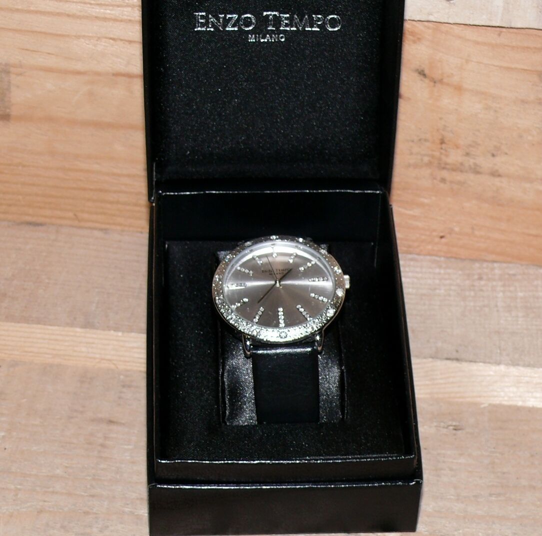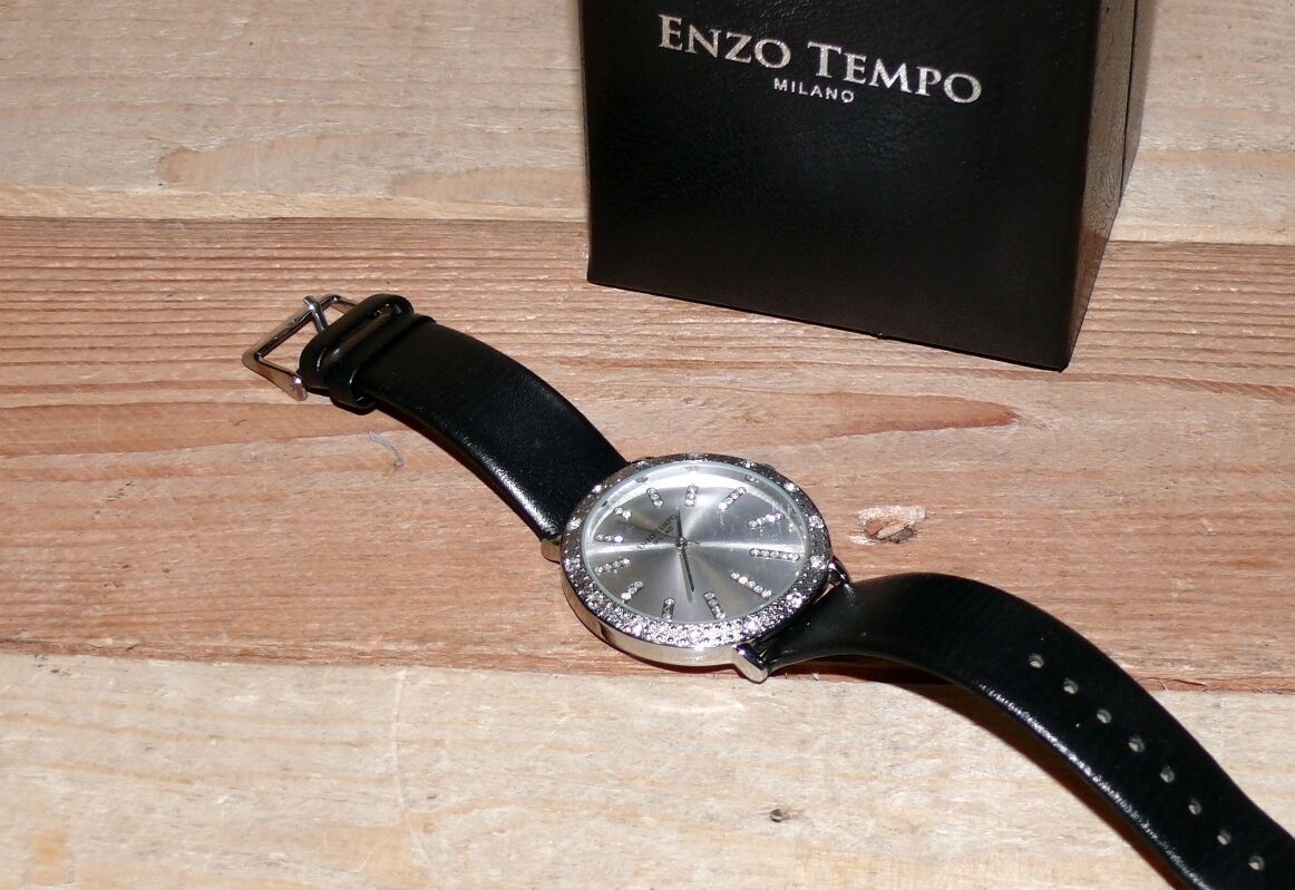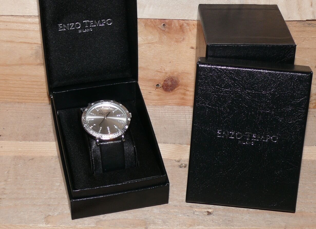 ENZO Tempo Elegante Damen Armbanduhr Schmuck Steine Leder armband Edelst 1763681