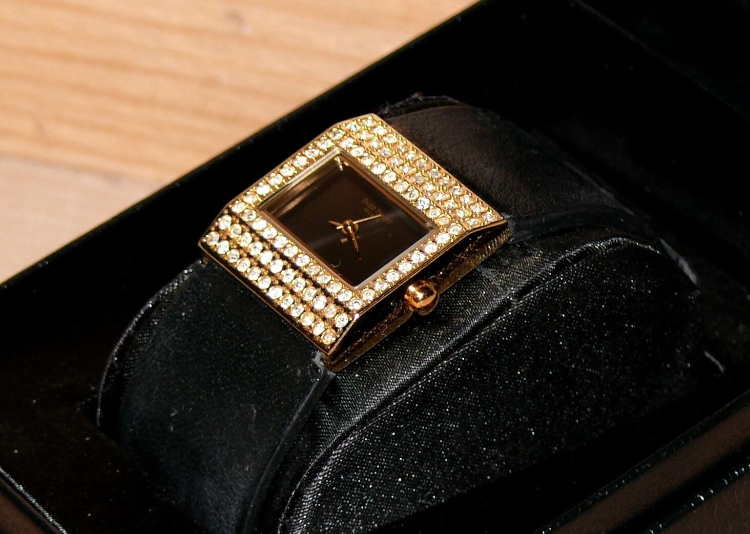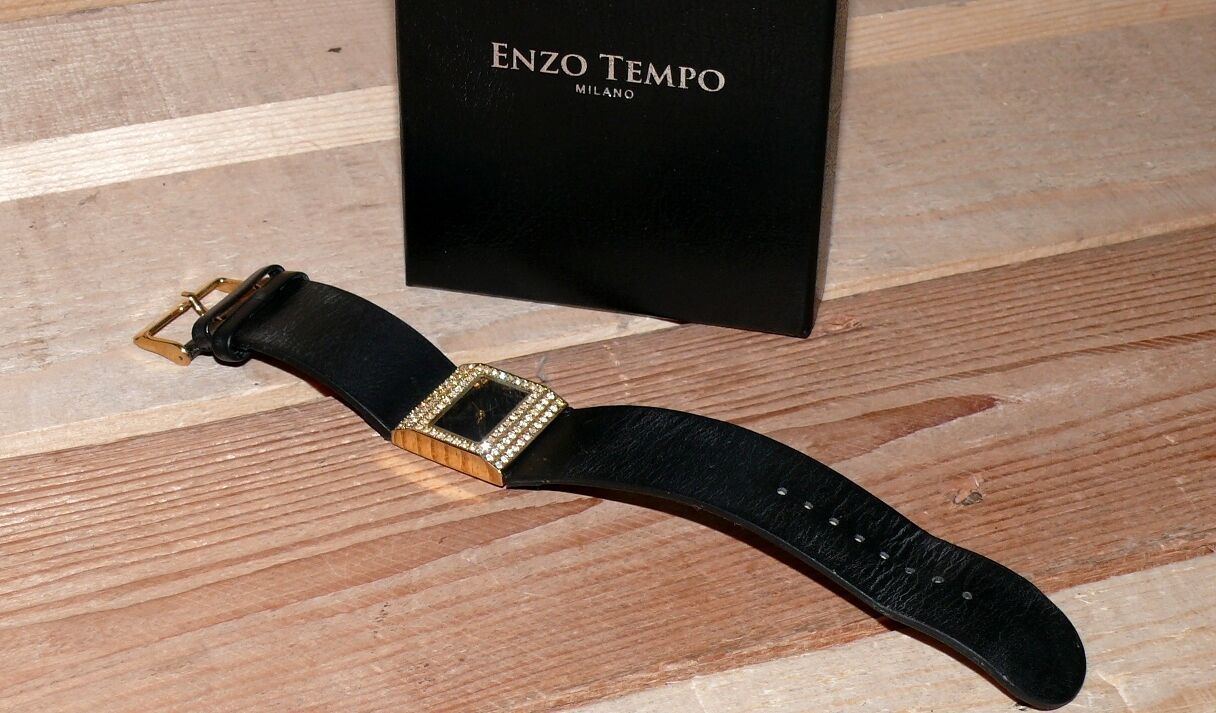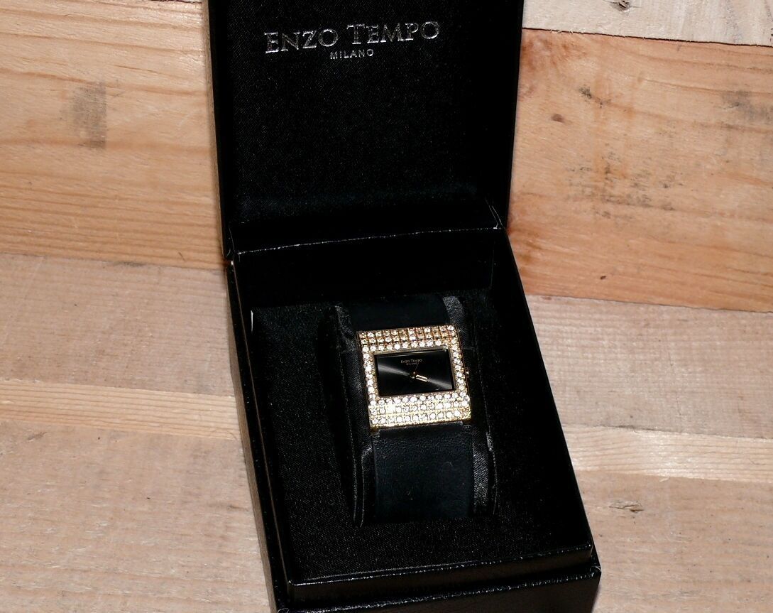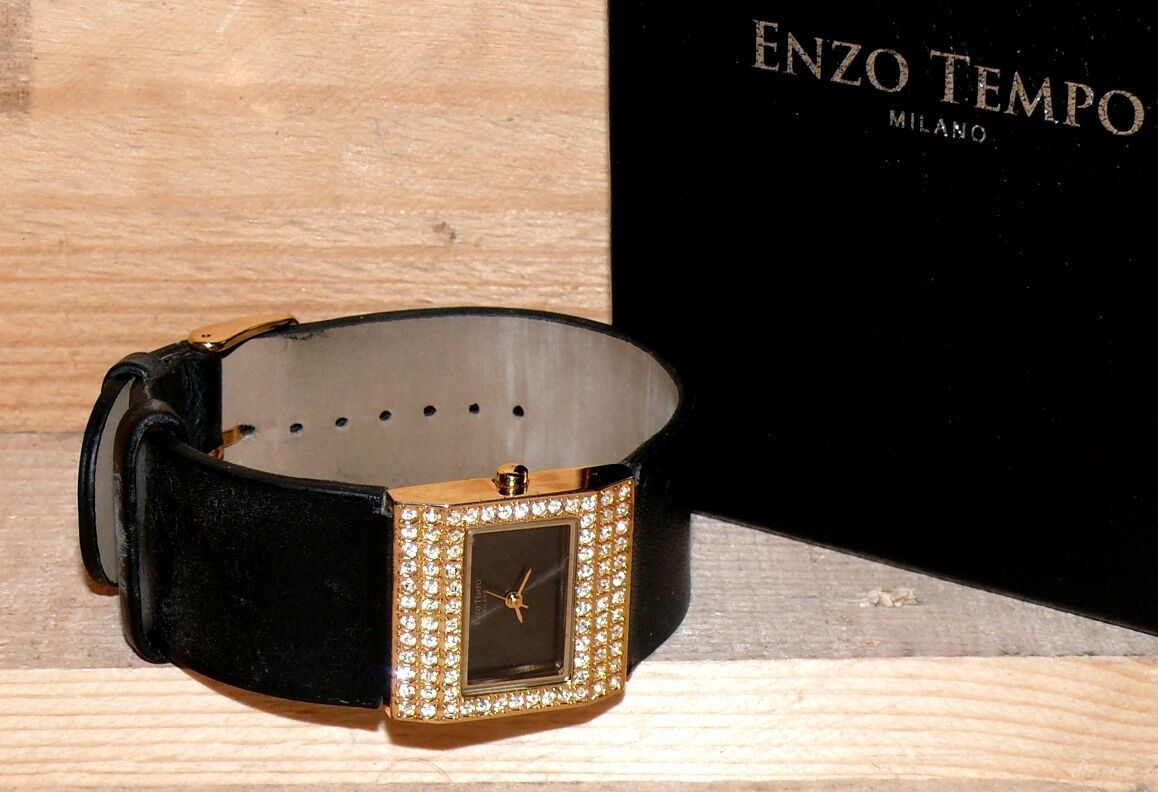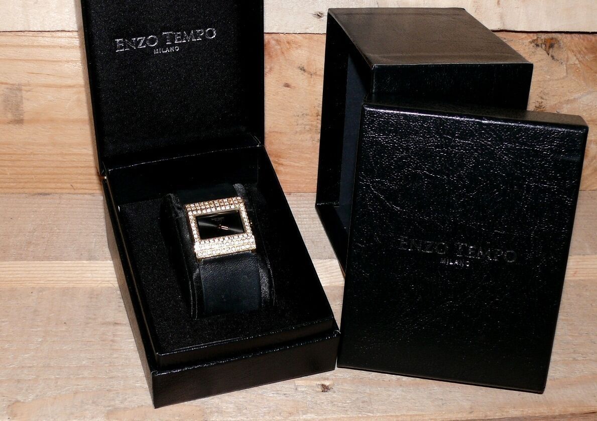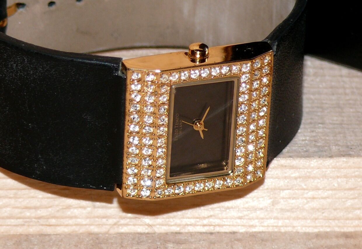 ENZO Tempo Elegante Damen Armbanduhr Schmuck Steine Leder armband Gold 1763690