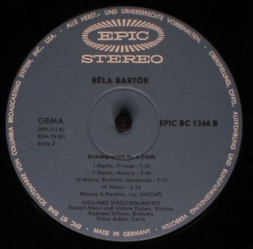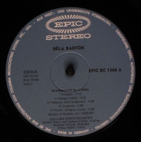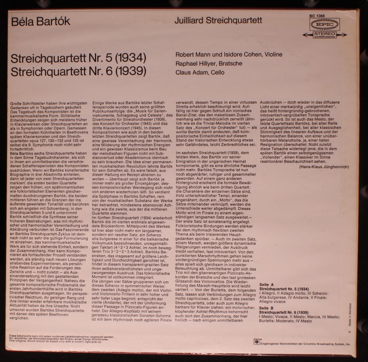Epic BC 1366 - Béla Bartók, Juilliard String Quartet - Streichquartette Nr. 5