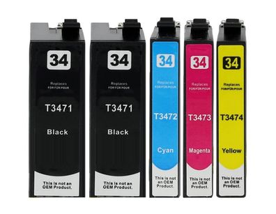 • 5 Tintenpatronen kompatibel mit Epson T34 XL black, cyan, magenta und yellow