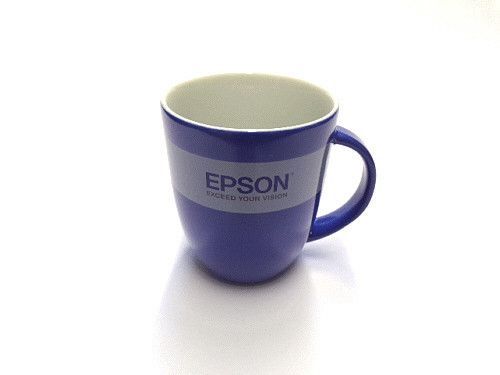 EPSON Henkeltasse mit beidseitigem Werbedruck Epson - Exceed Your Vision Abmessungen: 9,5 x 8 cm (HxD) Material: Steingut Farbe: Blau +++ NEUWARE KARTONVERPACKUNG +++
