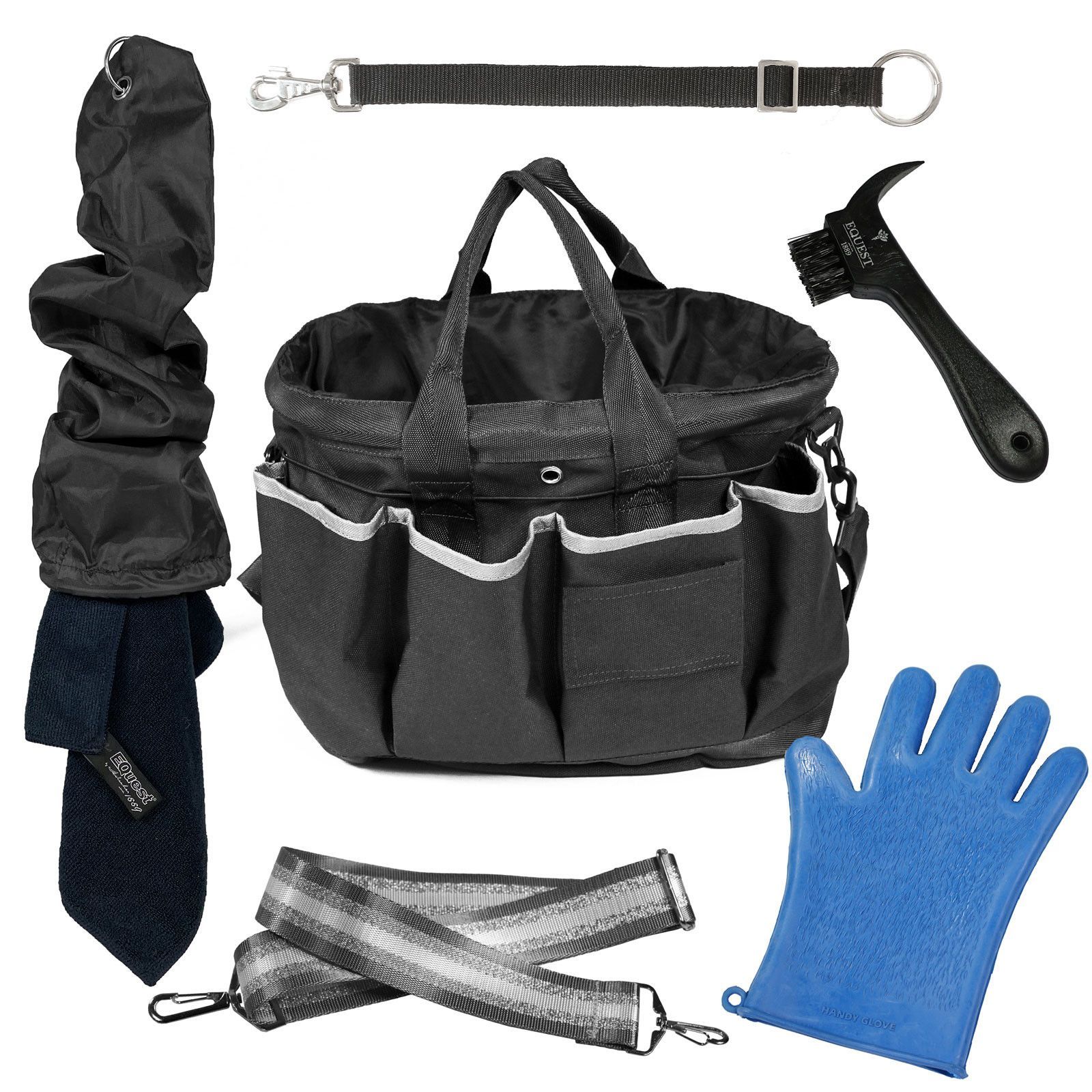 EQuest Grooming Bag befüllt - Putztasche mit Inhalt für die Pferdepflege, schwarz