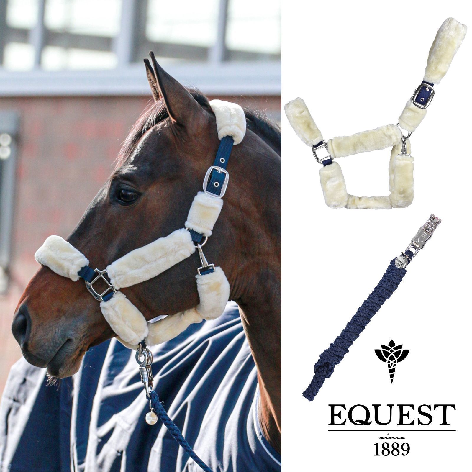 EQuest Halfter Comfort für Pferde mit Führstrick, navy - S / Pony
