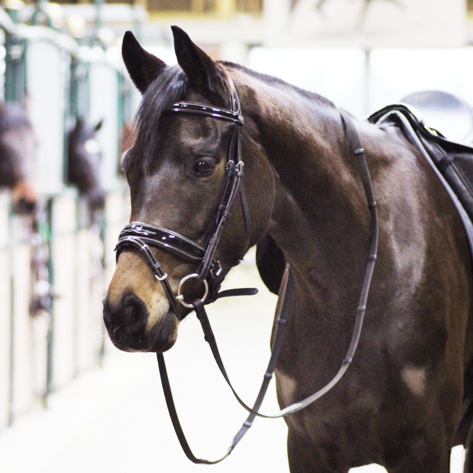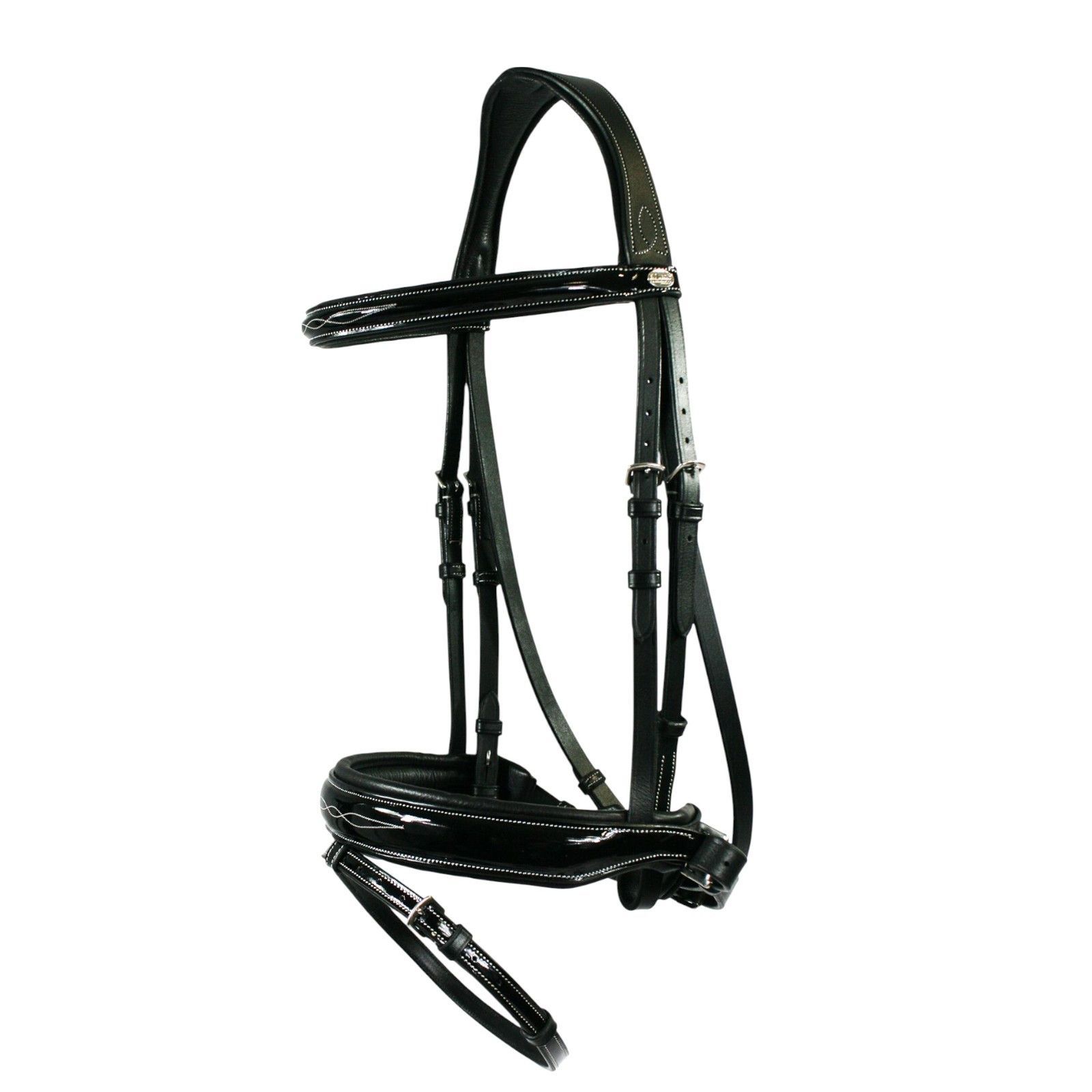 EQuest Trense Glossy Seams, schwarz - hochwertige Lacktrense für Pferde, M