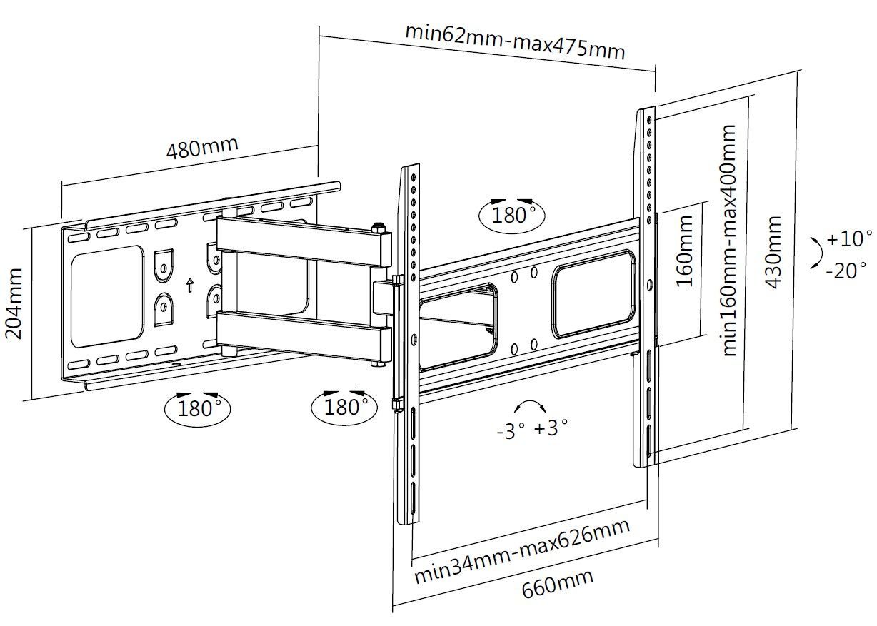 equip voll bewegliche TV-Wandhalterung (37Zoll-70”)