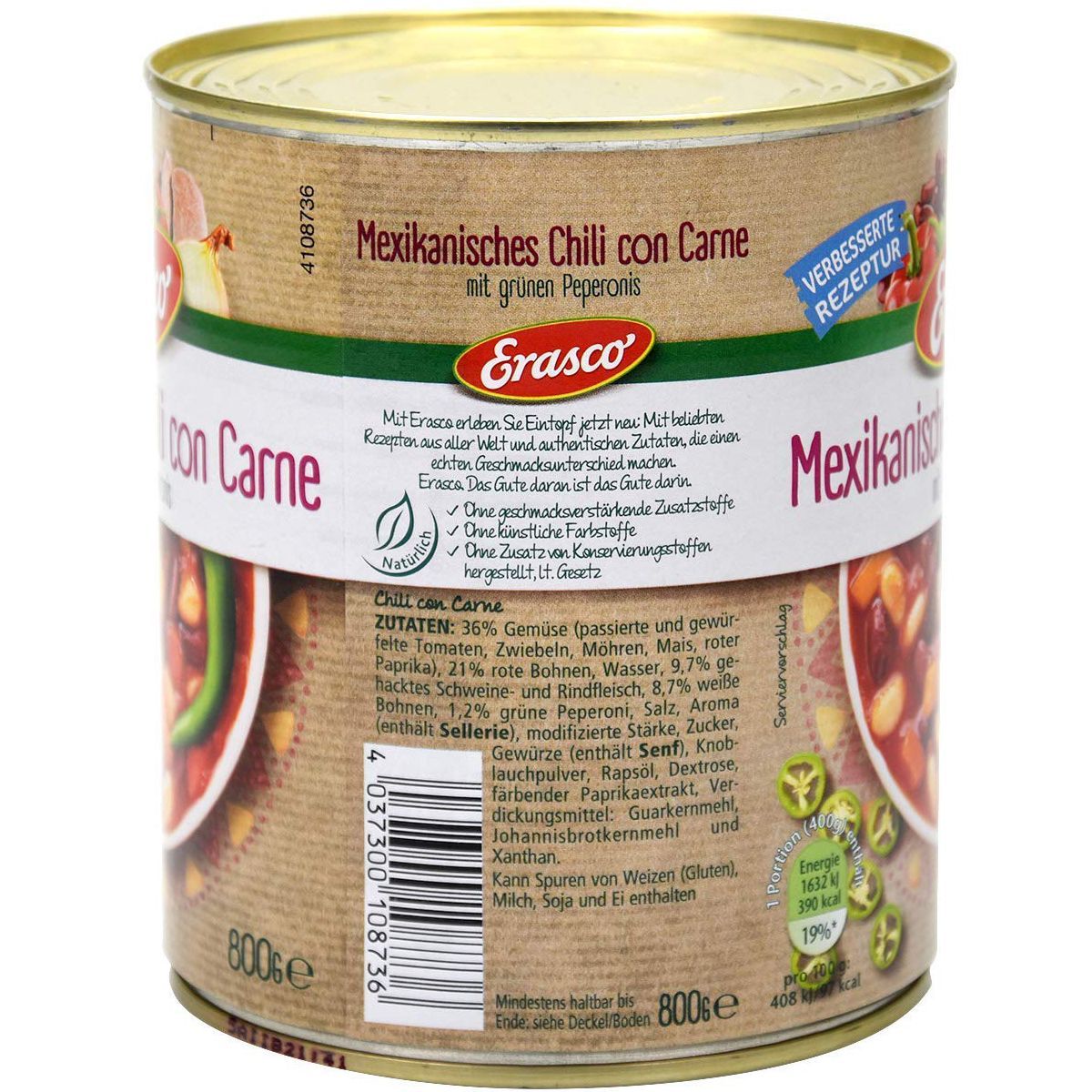 Erasco Mexikanisches Chili con Carne mit grüner Peperoni 800g