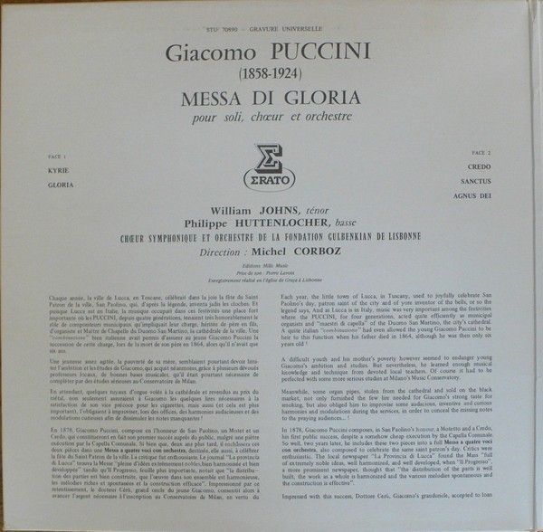 Erato STU 70890 - Giacomo Puccini, William Johns, Philippe Huttenlocher, Chorus