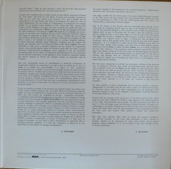 Condition Vinyl Very Good Plus (VG+) Condition Sleeve Very Good Plus (VG+) Tracks included: Messa Di Gloria I 1. > Kyrie 2. > Gloria II 1. > Credo 2. > Sanctus 3. > Agnus Dei