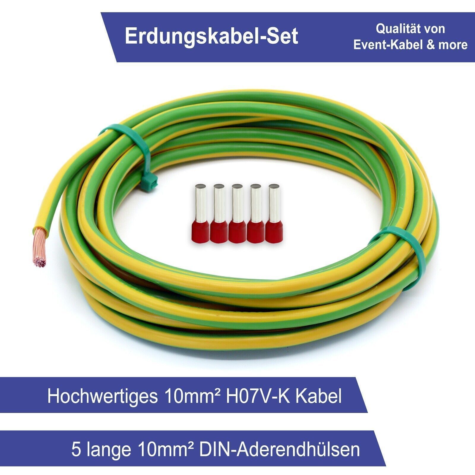 Erdungskabel 10mm² - Grün/Gelb - H07V-K - Erdungsleitung Aderleitung feindrähtig