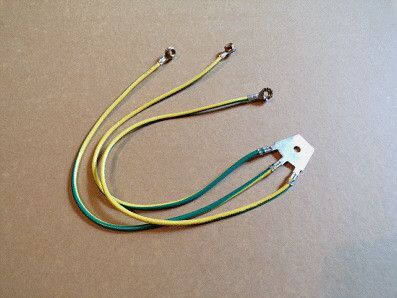 3-fach Erdungskabel-Verteiler mit Muttern an den Enden Klemmplatte mit Bohrung M6 Kabelquerschnitt: 4 qmm Kabellänge: je 40 cm Kabelfarbe: Grün Gelb M6 Sechskantmuttern mit Sägezahnscheiben +++ NEUWARE +++