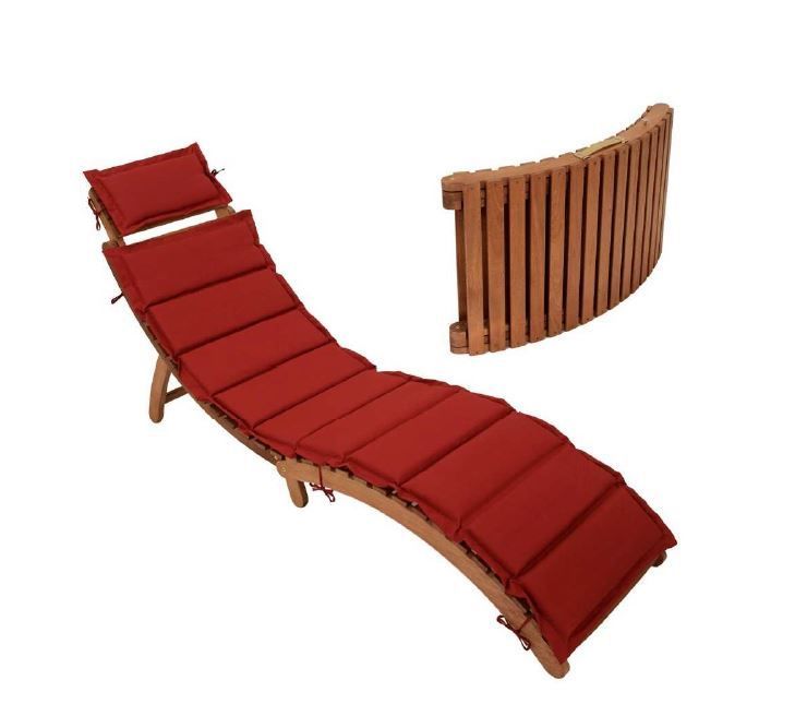 Ergonomische Gartenliege, Sonnenliege Akazie mit Polsterauflage