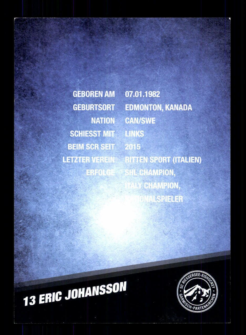 Eric Johansson SC Riessersee 2015-16 Autogrammkartel Eishockey + A 165297