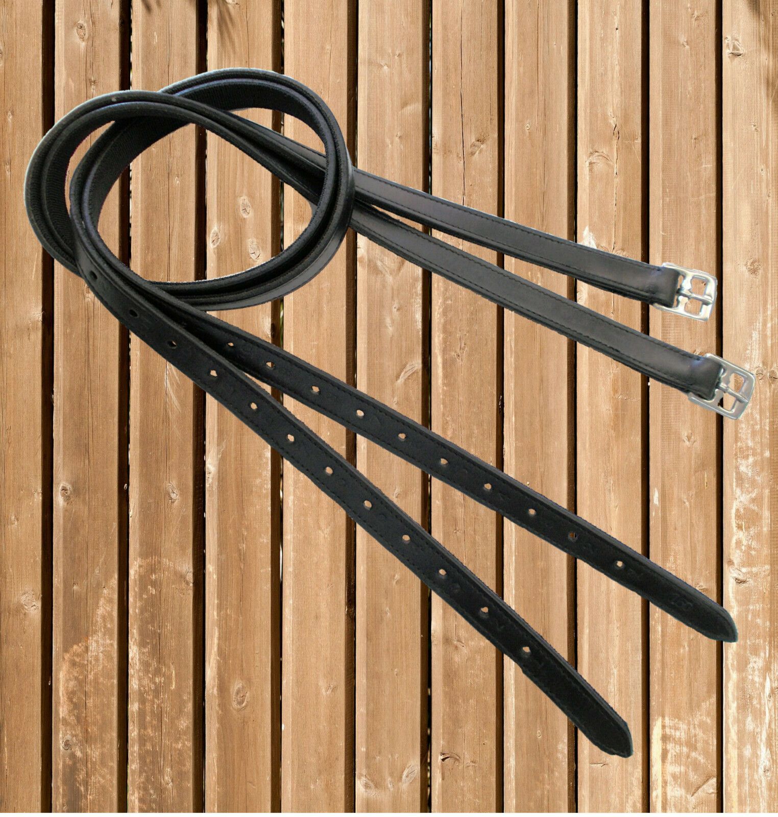 Eric Thomas Leder Steigbügelriemen Nylon unterlegt, Bügelriemen Leder, schwarz, 160