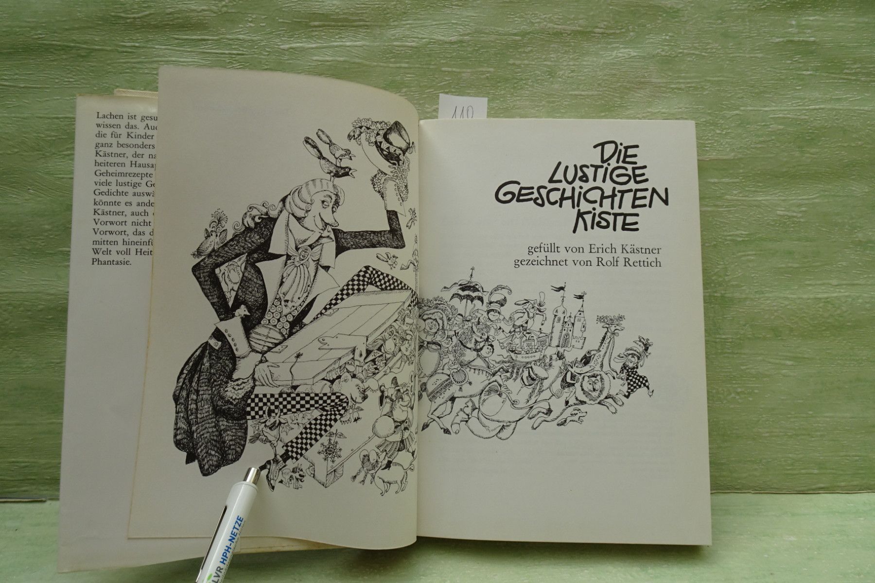 Jugend- & Kinderbücher ... Erinnerungen ..... Erich Kästner . Die lustige Geschichtenkiste Halbleinen , Schutzumschlag , 240 Seiten . Zustand : Halbleinen fleckig , Buchschnitt fleckig, Seiten gut+ . . . Abkürzungen: Buchschnitt : BS fleckig Buchecken : BE geknickt Buchrücken : BR beschädigt Sei