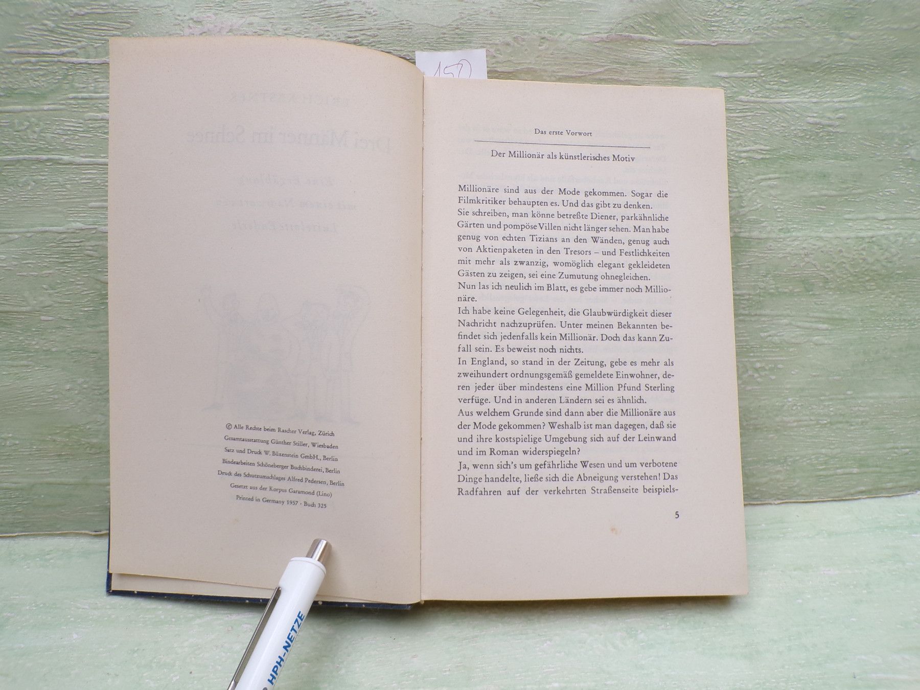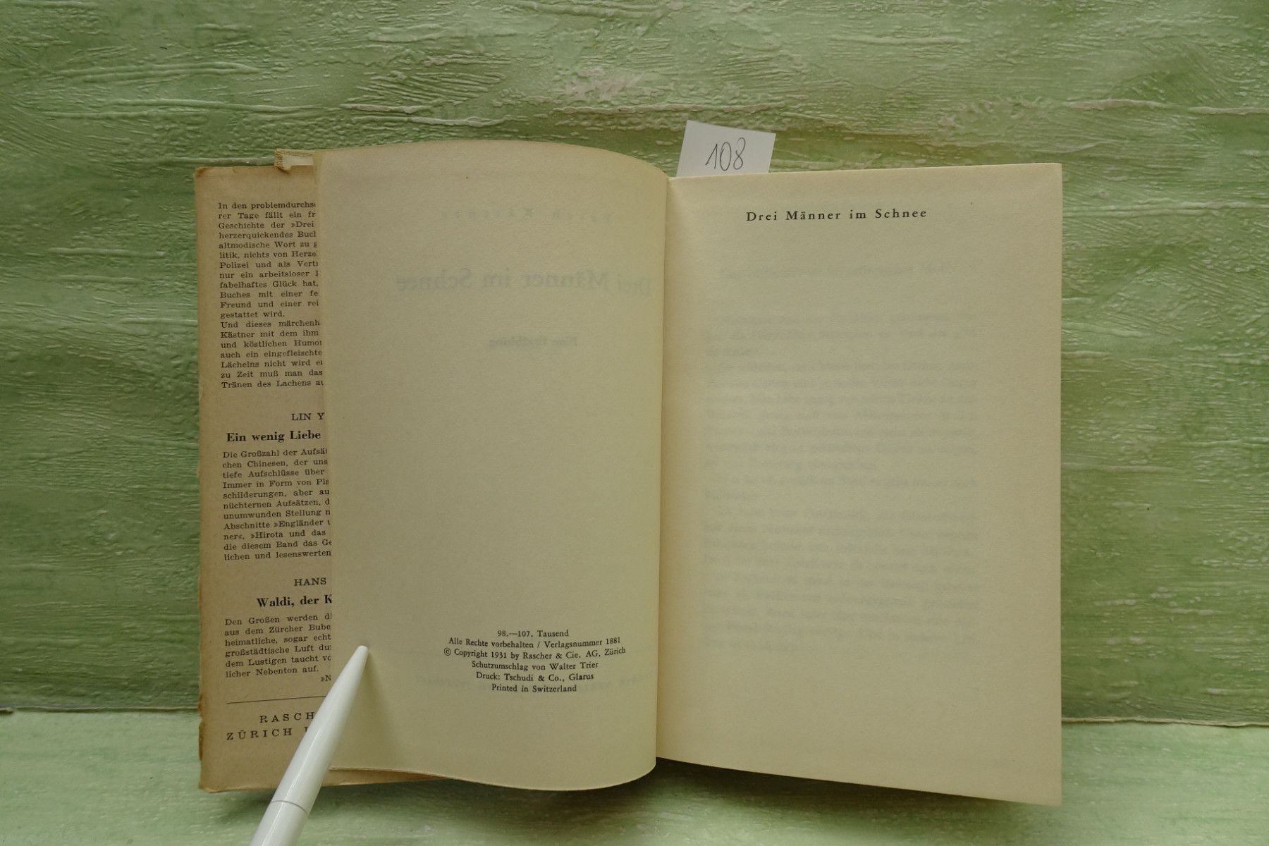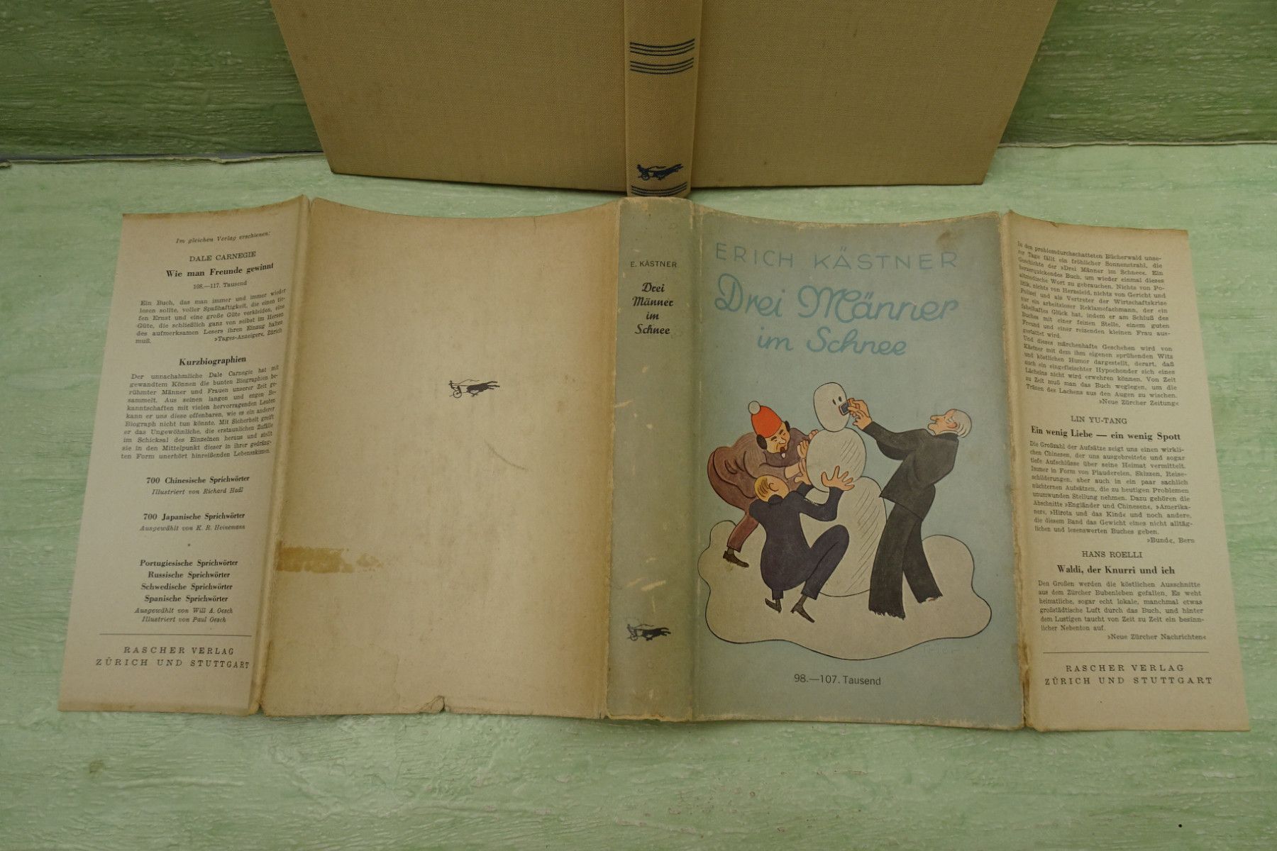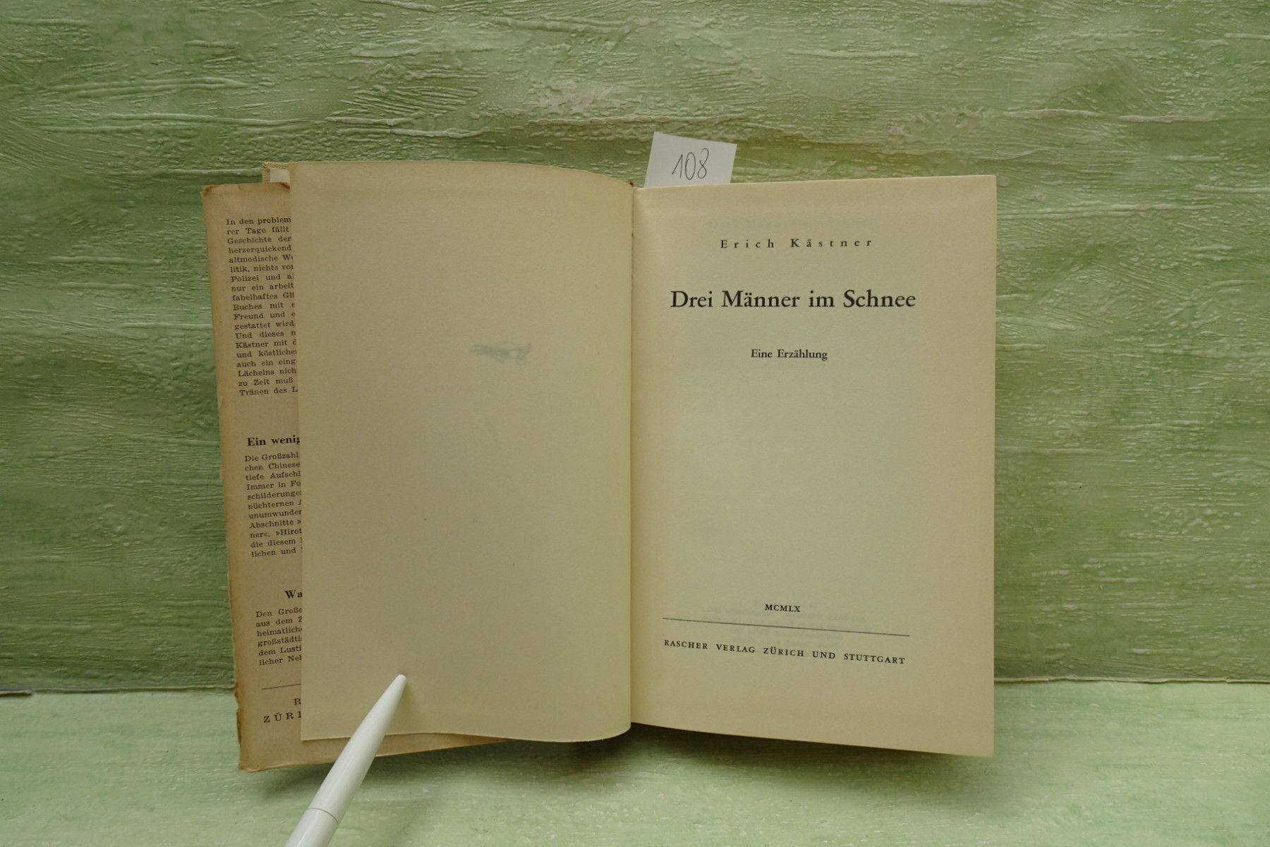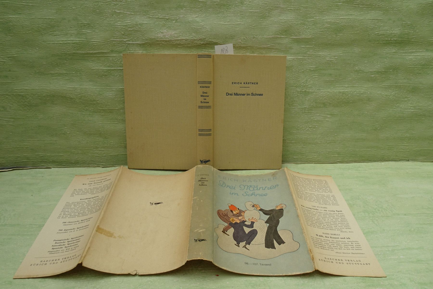 Jugend- & Kinderbücher ... Erinnerungen ..... Erich Kästner Drei Männer im Schnee . Auswahl: . 108: Halbleinen , Schutzumschlag Rascher Verlag 98.-107. Tasuend Zustand : Halbleinen leicht angeschmuddelt , Buchschnitt fleckig, Seiten gut+ . 150: Leinen Büchergilde Gutenberg, Frankfurt am Main mit