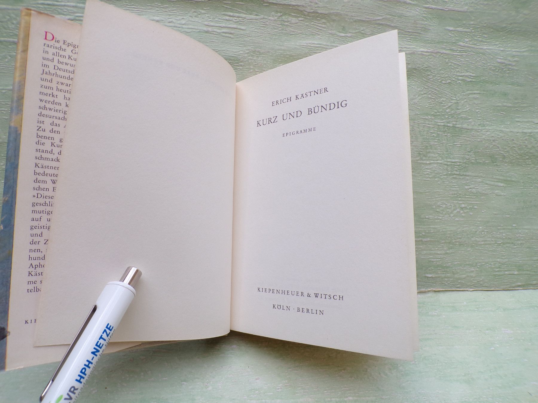 Erich Kästner Kurz und bündig Kiepenheur Witsch Köln Berlin L SU 1965