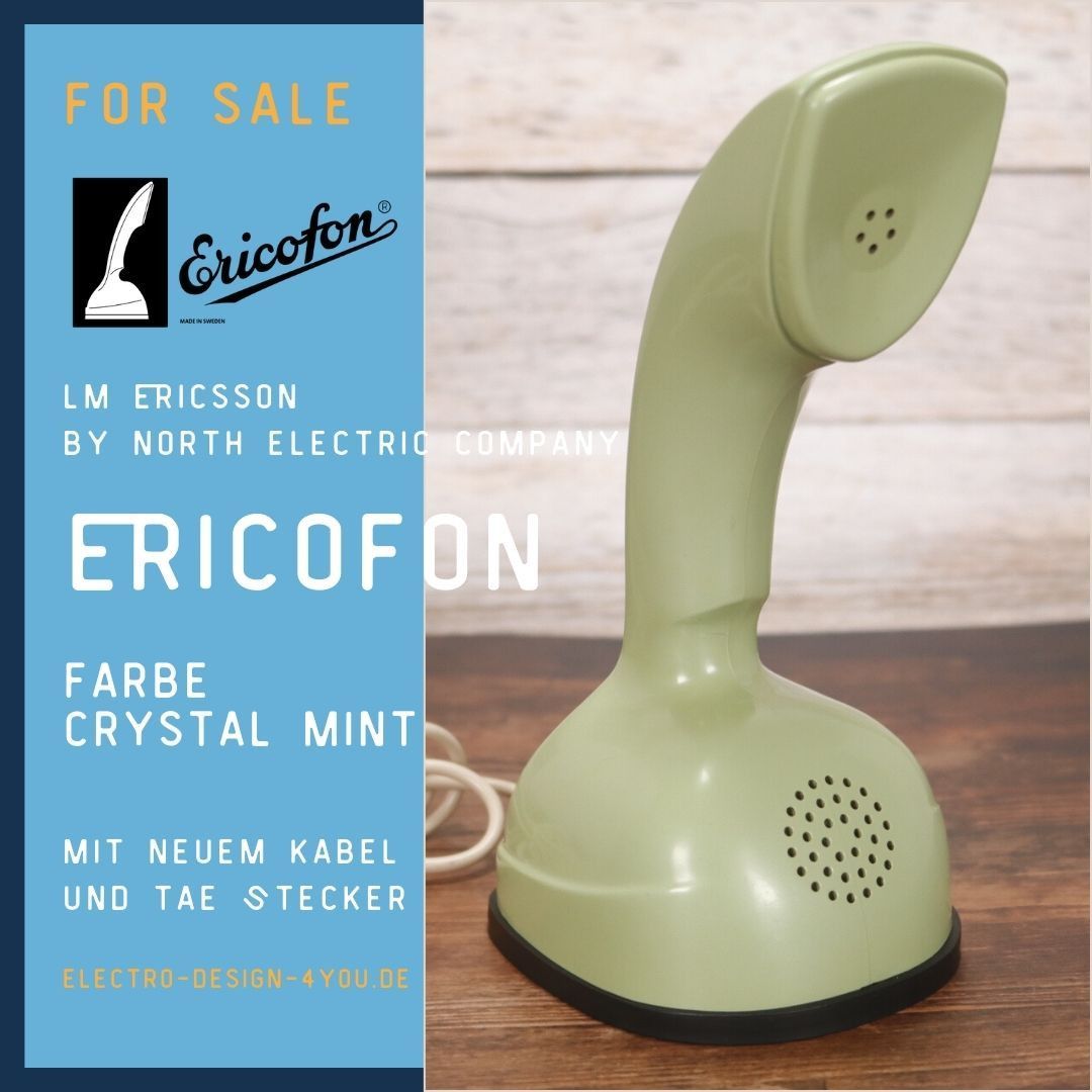 Senden Sie uns eine Nachricht ERICOFON COBRAFON in Crystal Mint VINTAGE Vintage Kult-Telefon aus den 50er 60er Jahren Ericsson Ericofon Kobratelefon – Minzgrün (Crystal Mint) Ein Stück Designgeschichte – voll funktionsfähig! Dieses originale Ericsson Ericofon, auch bekannt als Kobratelef... Mehr
