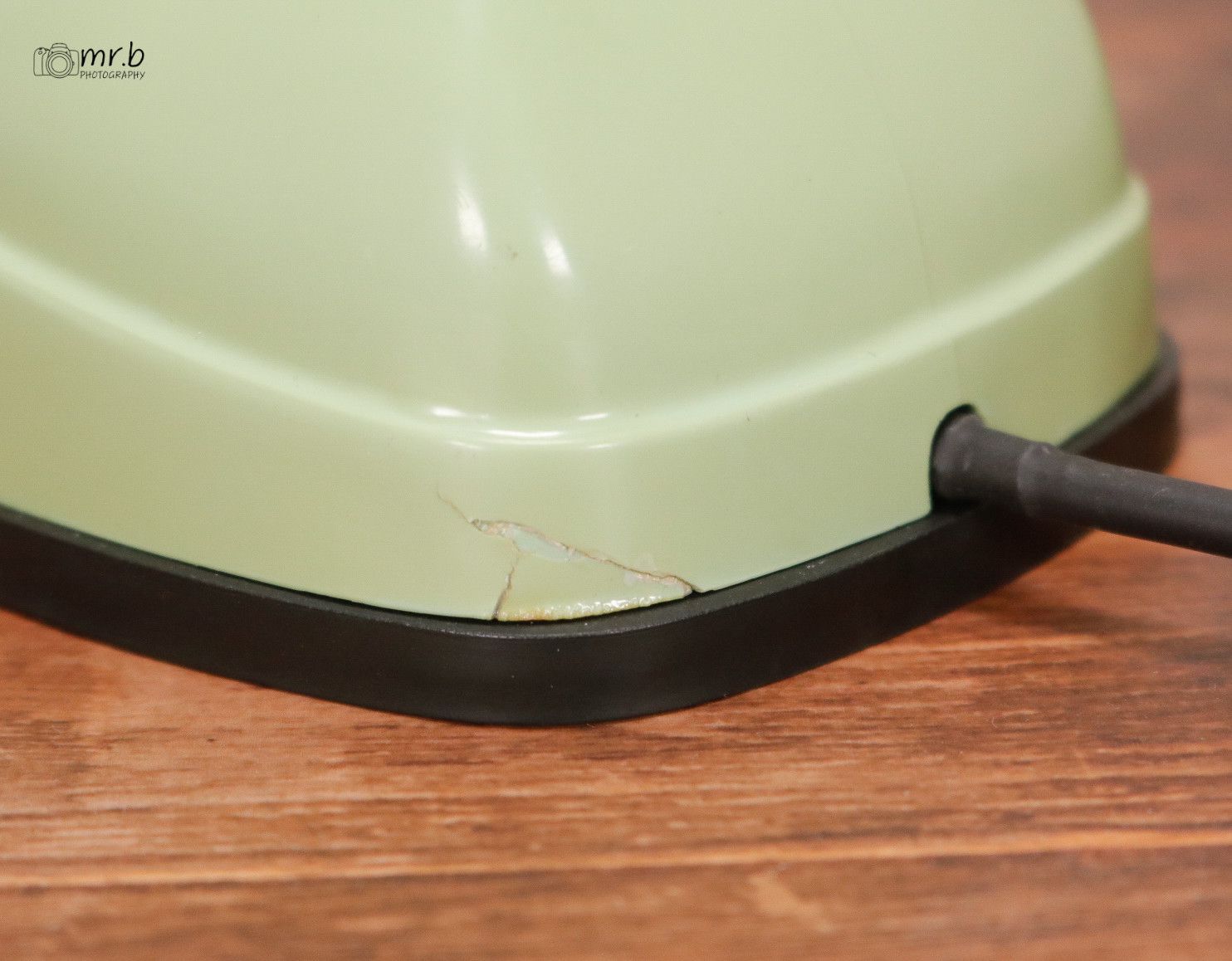 * Zustandsbeschreibung: Sichtbare Gebrauchsspuren wie Kratzer und Katschen im Kunststoff, sowie eine Beschädigung an der Rückseite. Altersbedingt sind Farbunterschiede am Geh