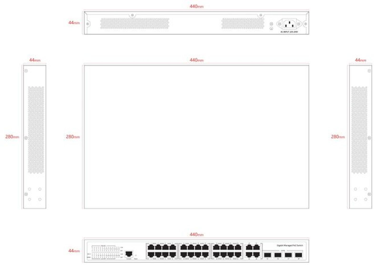 Ernitec Ernitec Managed Layer 2+ Switch, 24 ports, 4 x Gigabit RJ45 ports, 1 x console port (