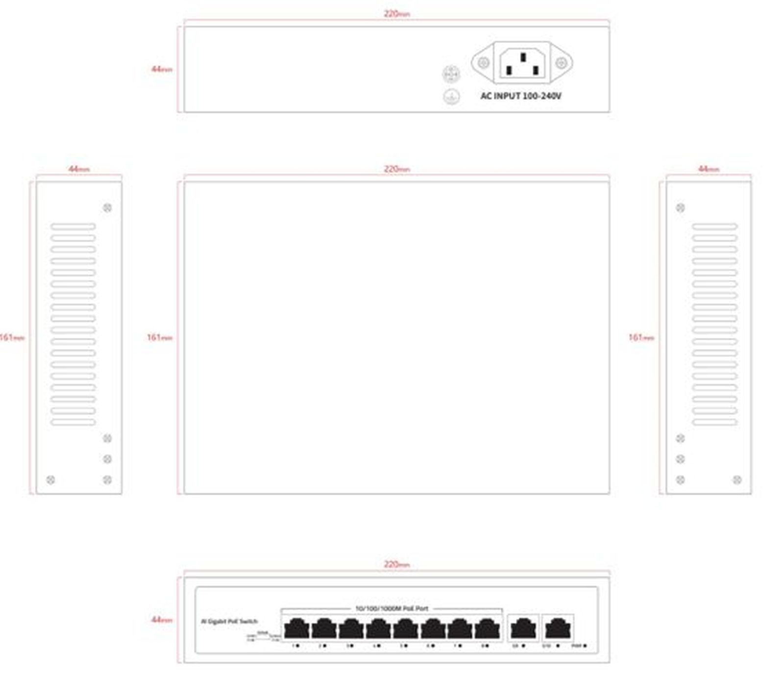 Ernitec Ernitec Unmanaged Intelligent 8 PoE RJ45 ports (ELECTRA-U08-1GB-110W)