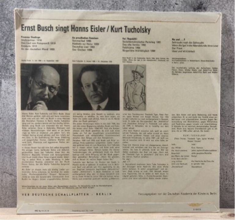 Ernst Busch Singt Hanns Eisler / Kurt Tucholsky LP Vinyl — Artikel auf Lager