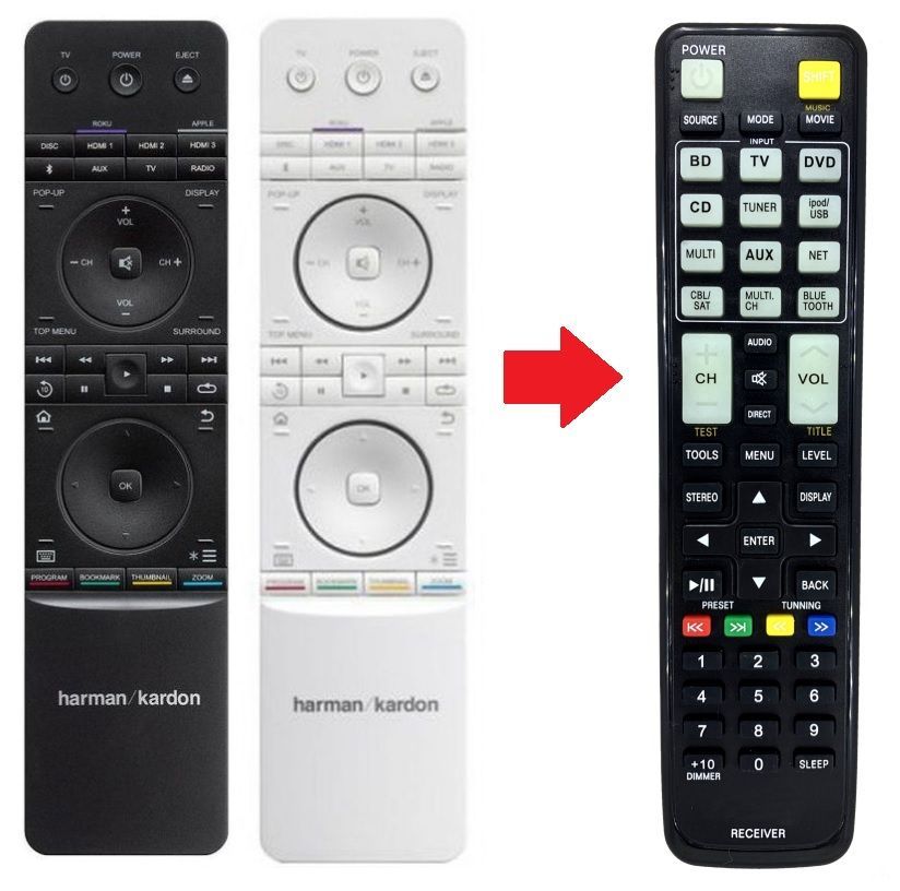 Ersatz Fernbedienung für die angegeben Harman Kardon modellen Daten: Beste Qualität und Neuware! Volle Funktionalität (Sendereinstellung, Menüfunktionen, etc...) Kein programmieren notwendig. Sie können sofort nach dem Einlegen der Batterien Ihr Gerät mit der Fernbedienung bedienen. Sie kaufen die i