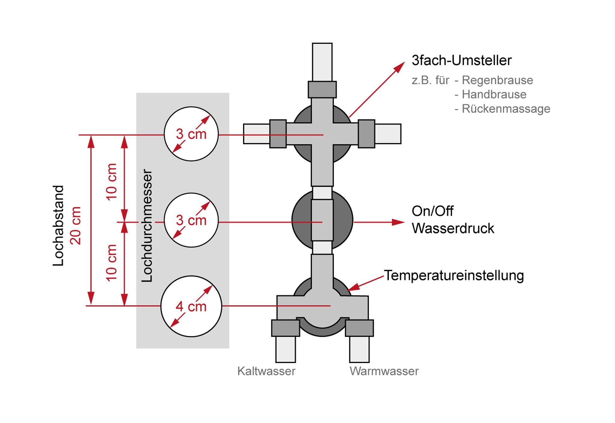 Ersatz Thermostat Armatur 3 fach Umschalter Dusche D38 10cm
