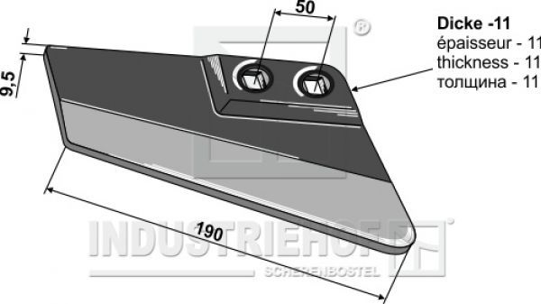 Ersatzflügel - rechts (101.400-45-2R) Ersatzflügel - rechts Technische Datem: Bestellnr.: 101.400-45-2R Gewicht: 0.870 kg Dicke: 9.5 Arbeitsbreite: 190 Bohrungsabstand: 50 Zubehörteile: 1 x 1030810 Plugschraube DIN 608 M10 x 1.5 x 30 mit Sechskanntmutter Passend für : Originalnummer: - Köckerling -