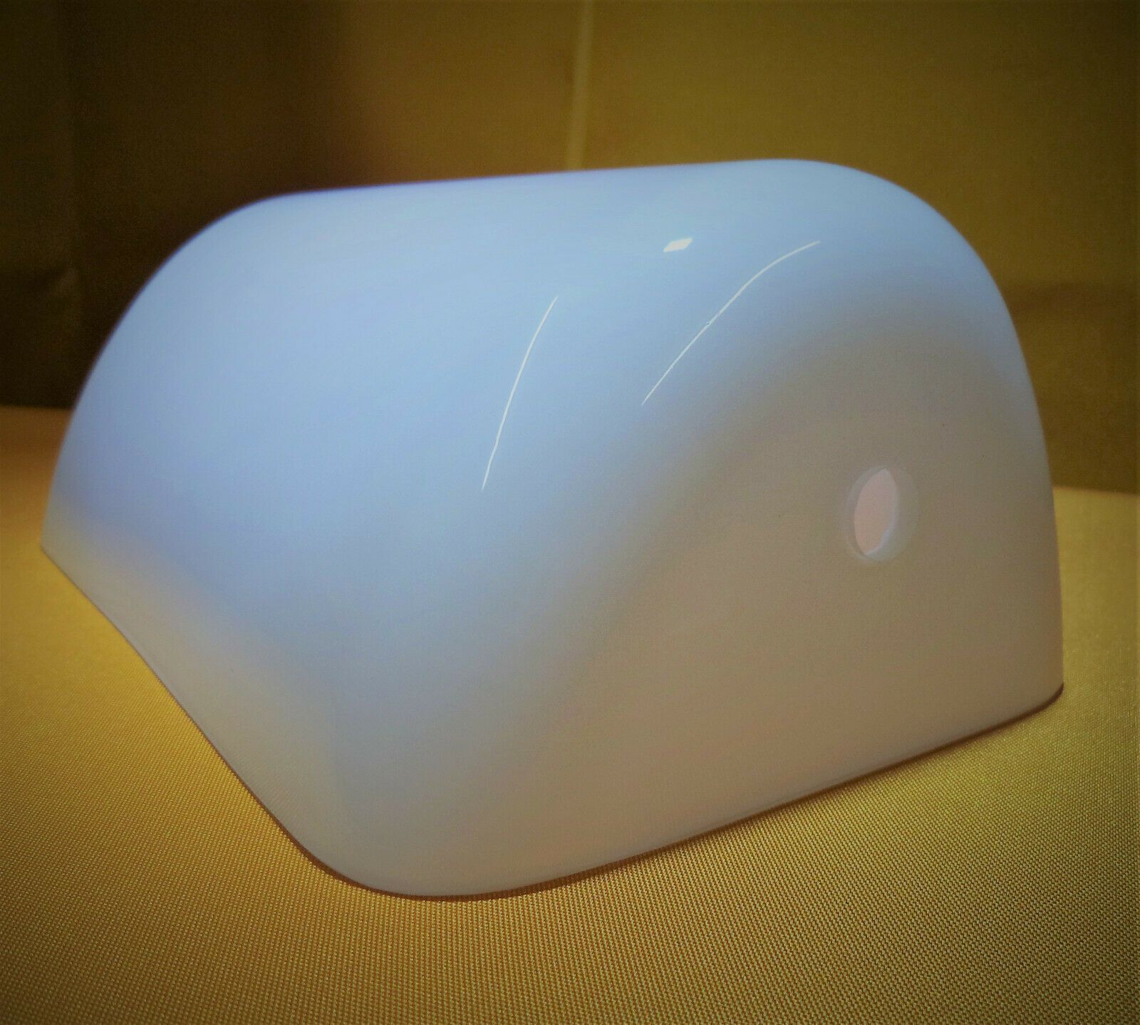 Ersatzglas Lampenglas Lampenschirm Bankerslamp Opalglas (Triplex) Überfangglas weiß glänzend Techn. Details und Lieferumfang: 1 Stück Glas-Nr. G81200 Bohrungen 2 x 13 mm 13mm Breite 230mm + - 2 Tiefe 138mm + - 1 Höhe 86mm + - 1 Gewicht Gramm: 1000 Es handelt sich um handgefertigte mundgeblasene Gläs