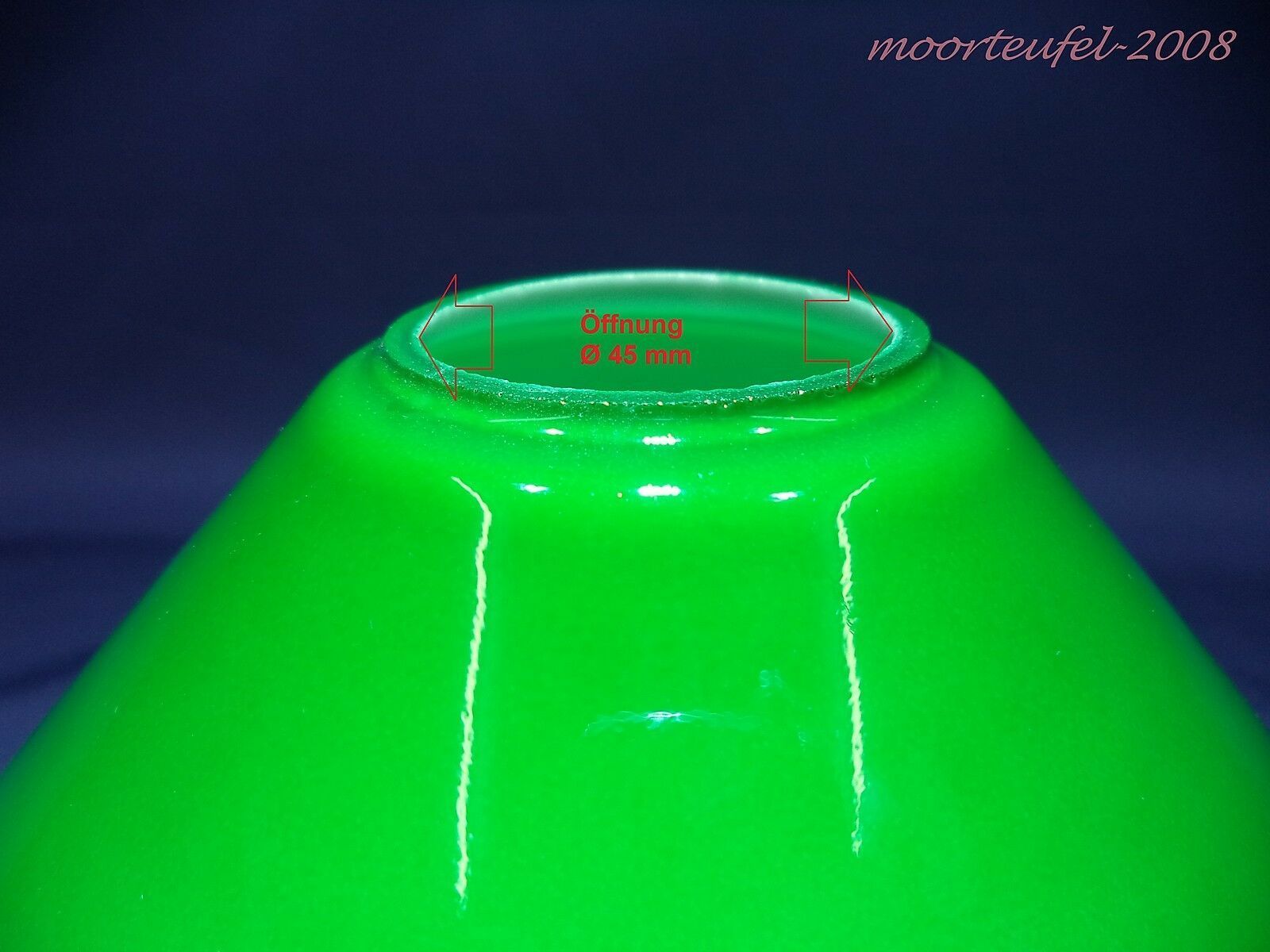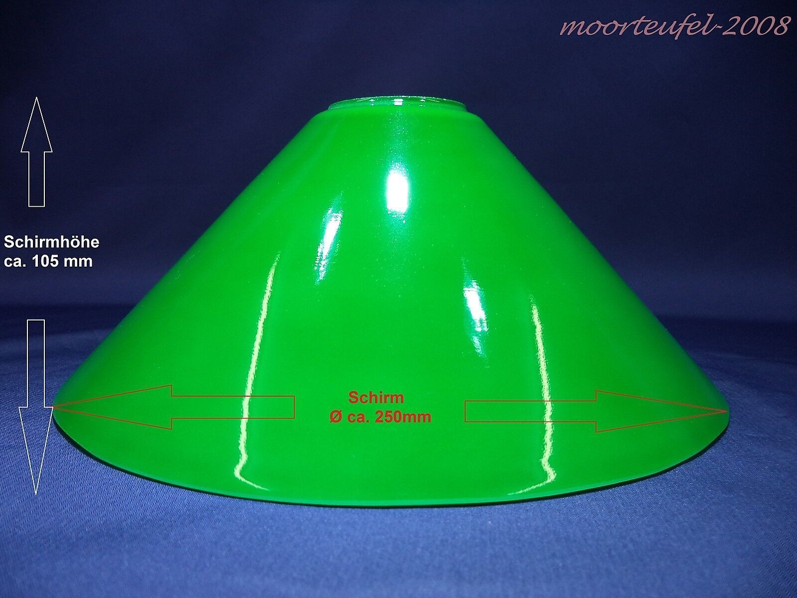 Ersatzglas Lampenschirm Lampenglas Schusterschirm Opalglas mundgeblasen grün glänzend lackiert geschliffener Rand für E27 Schraubring-Fassung geeignet Techn. Details und Lieferumfang: 1 Stück Glas-Nr. G81793 Durchmesser mm ca. 250 mm Höhe mm ca. 105 mm Öffnung Ø mm ca. 45 mm Randhöhe mm ca. 1