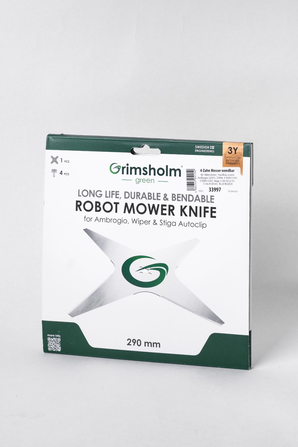 Messer passend für AMBROGIO L200 Evolution 1Li Mähroboter Das Messer hat einen Durchmesser von 290 cm und ist ein Wendemesser, beidseitig nutzbar Im Set sind das Messer und 4 neue Schrauben enthalten. Auch passend für: AMBROGIO L200 B19 , Carbon , DeLuxe 1Li , L200R DeLuxe 2Li , Elite , Evolution , L400 Carbon Die AMBROGIO Originalnummer: CSD01 1201 CSD01 1202 Nachbauteil KEIN Original