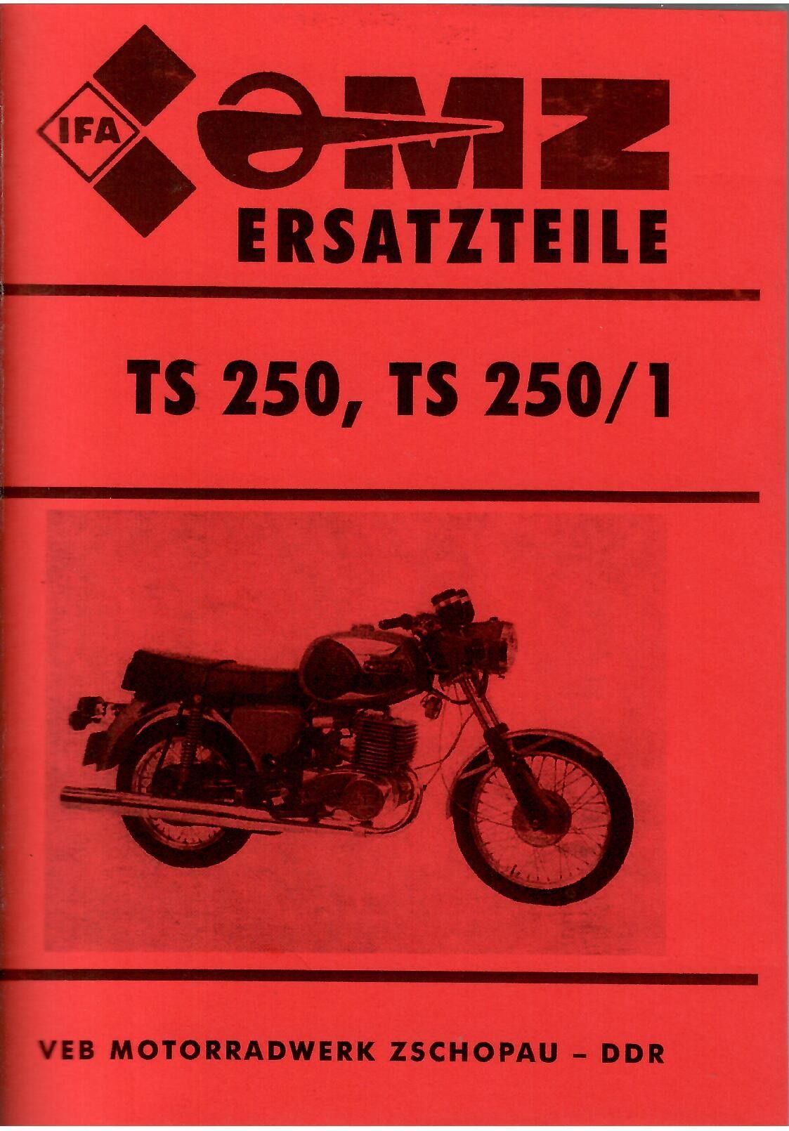 Ersatzteileliste Passend für MZ TS 250, TS 250/1, Motorrad, DDR Oldtimer, Ost Klassik