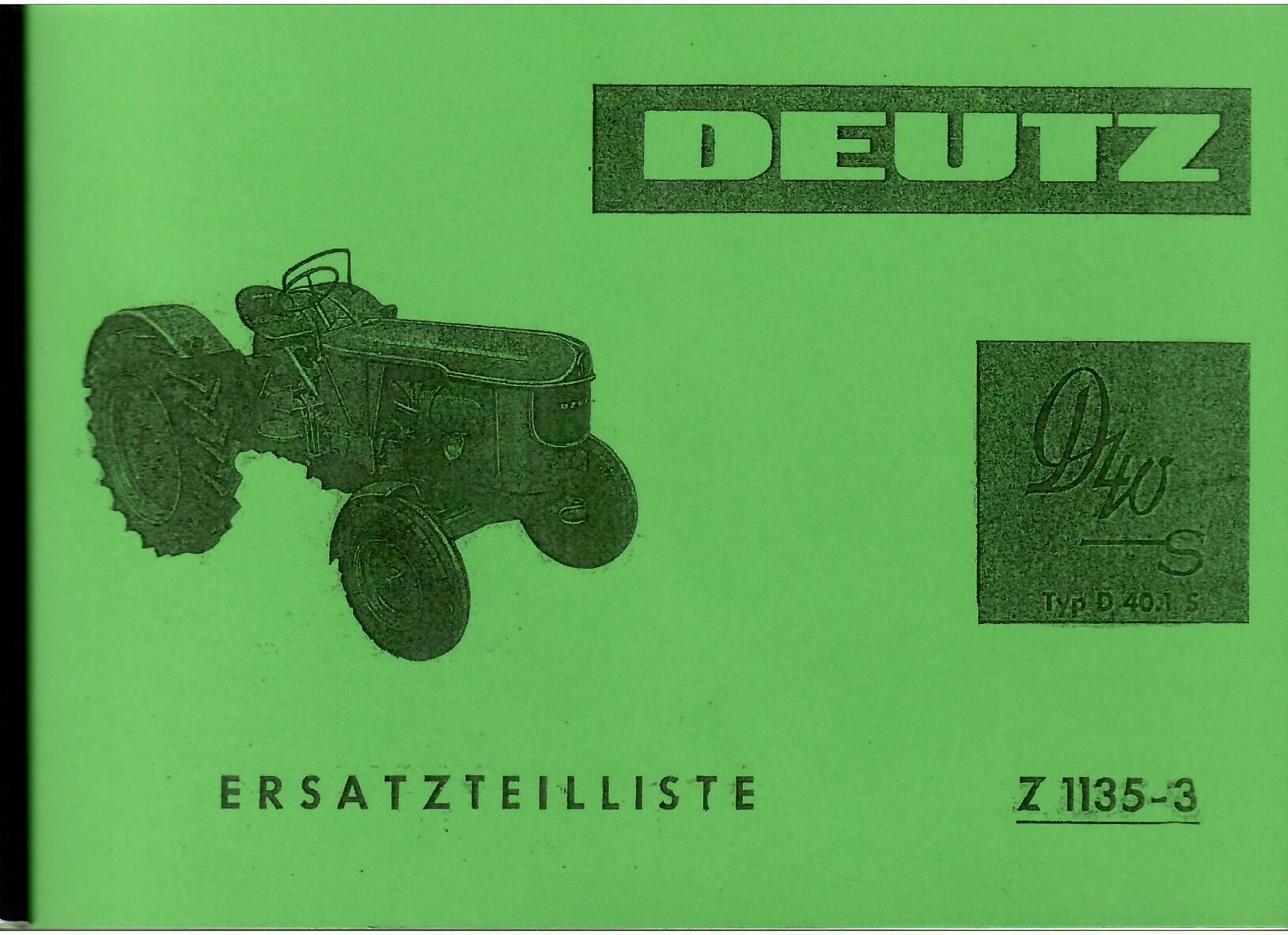 Ersatzteiliste Deutz Dieselschlepper D 40S, Typ D 40.1 luftgekühlt, Trecker, Oldtimer