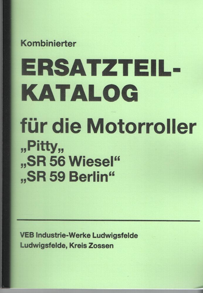 Ersatzteilkatalog IWL, Pitty , SR 56 Wiesel , SR 59 Berlin, DDR Motorroller