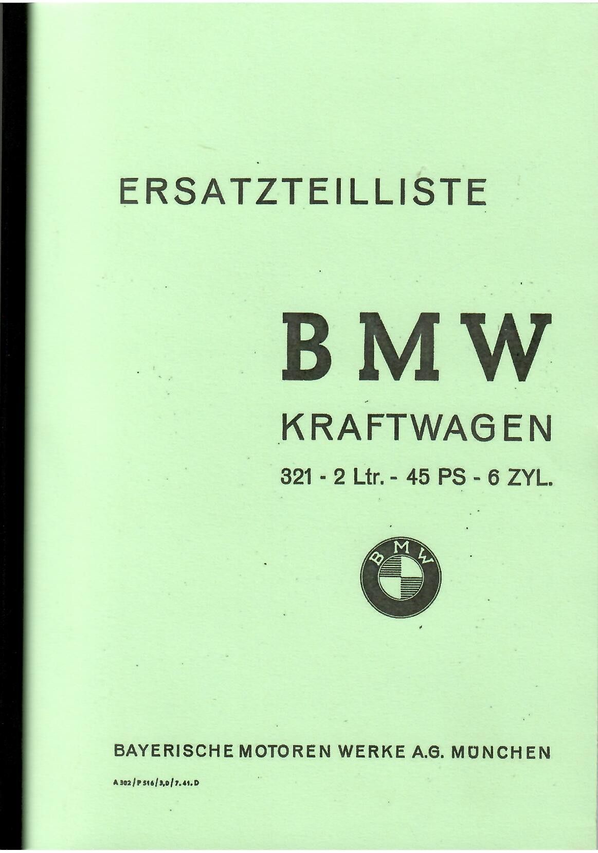 BMW Ersatzteilliste BMW 321 Kraftwagen, Auto, Oldtimer, Klassiker