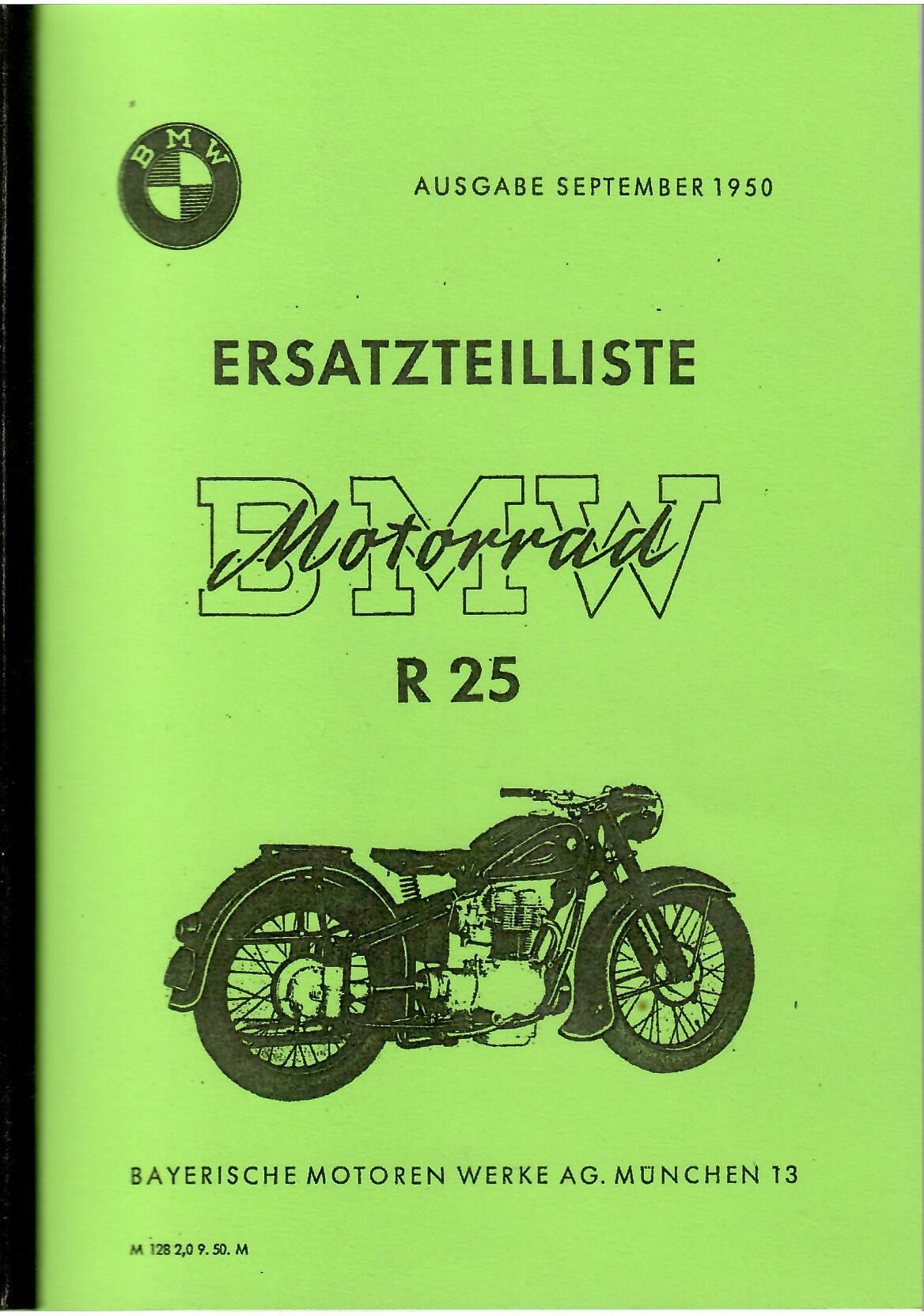 Ersatzteilliste BMW Motorrad R 25 Kurzbeschreibungen und Zeichnungen sämtlicher Einzelteile Ausgabe September 1950 ca 40 Seiten A 5 Nachdruck