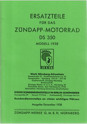 Ersatzteilliste Zündapp Motorrad DS 350 Modell 1938