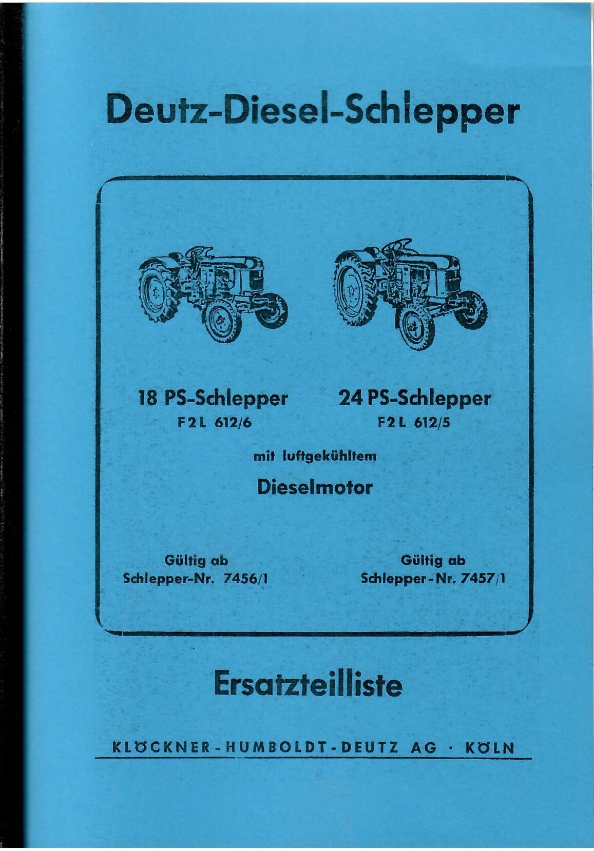 Ersatzteilliste Deutz Diesel Schlepper, 18 PS, F2L 612/6, 24 PS , F2L 612/5