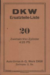 Ersatzteilliste DKW Personenwagen Nr. 20, Vier Zylinder 2 Takt mit 4,25 PS
