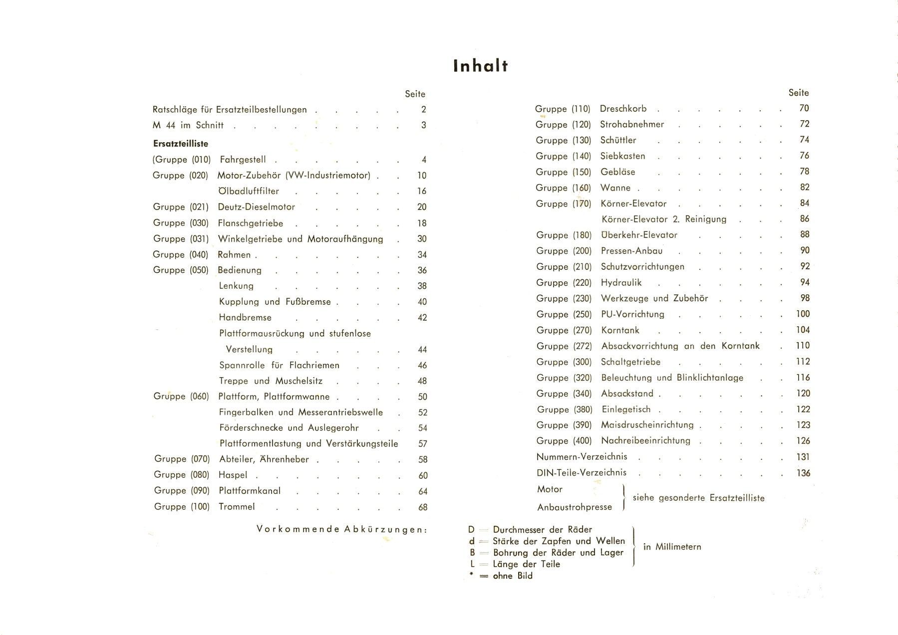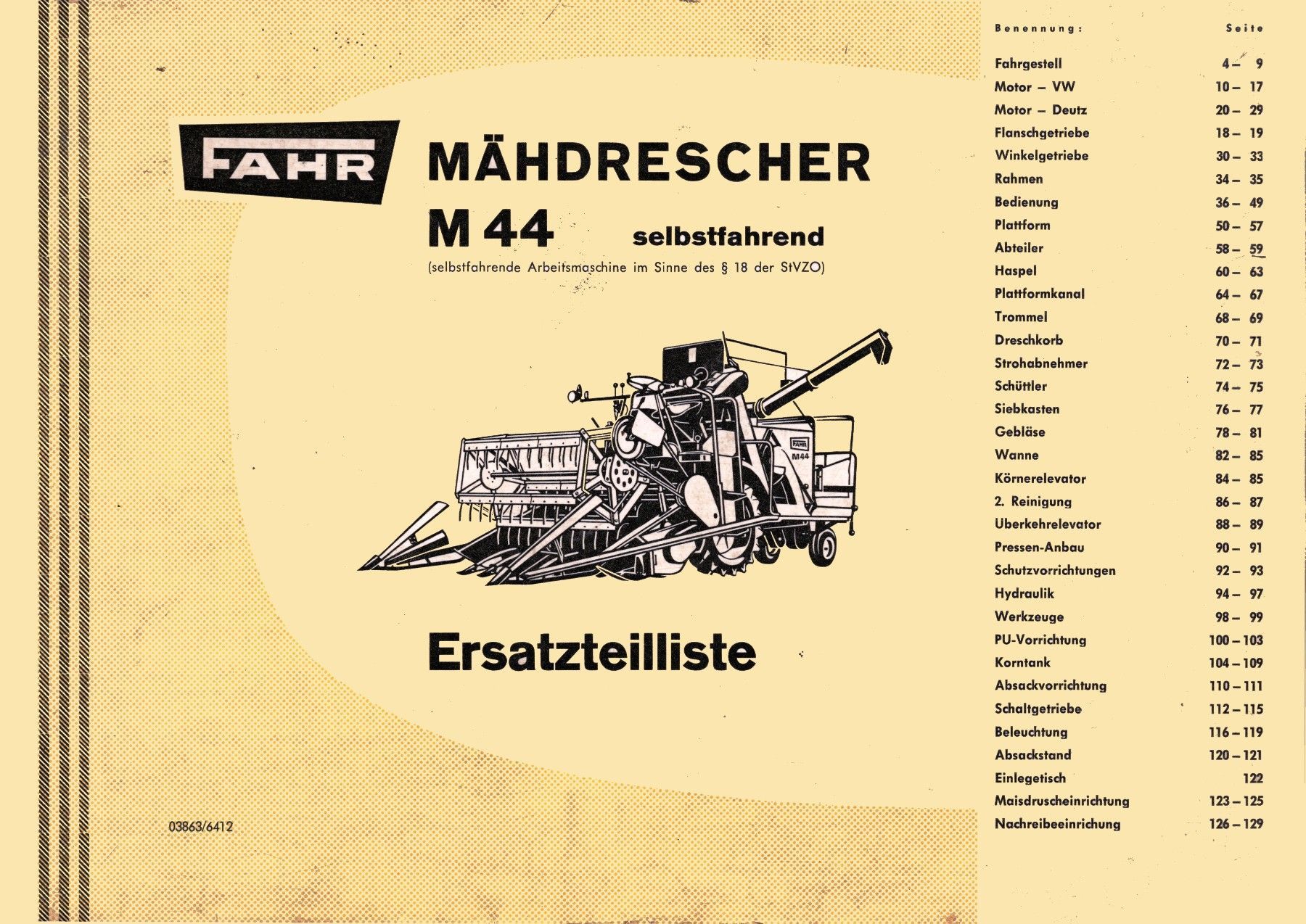 Ersatzteilliste Fahr Mähdrescher M 44 Selbstfahrend Original fast Ungebraucht
