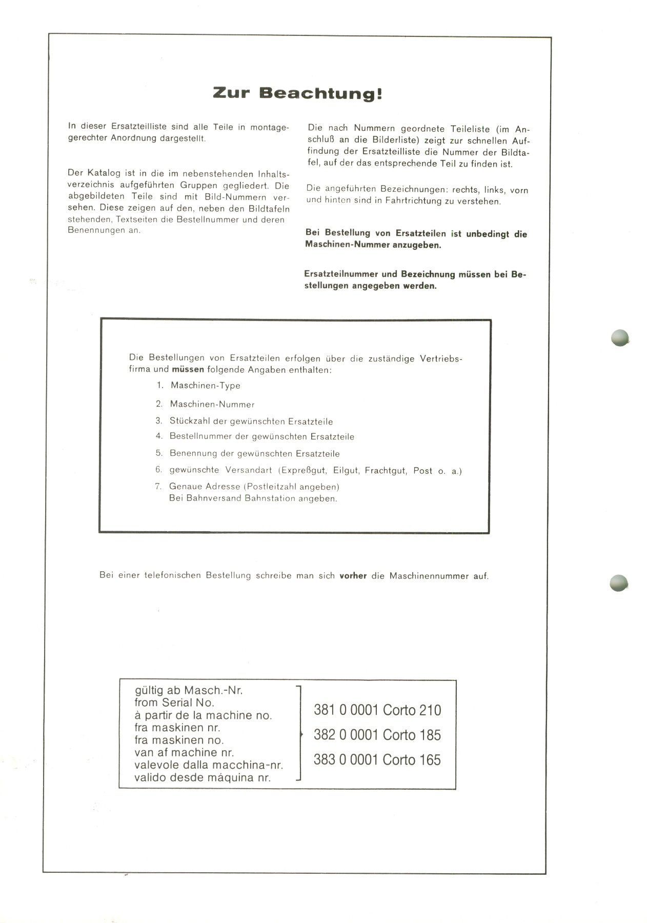 Ersatzteilliste für den Claas Corto 210 - 185 - 165 R