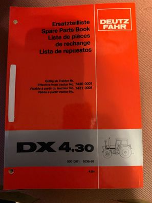 • Ersatzteilliste für den Deutz Fahr Traktor DX 4.30 Deutsch