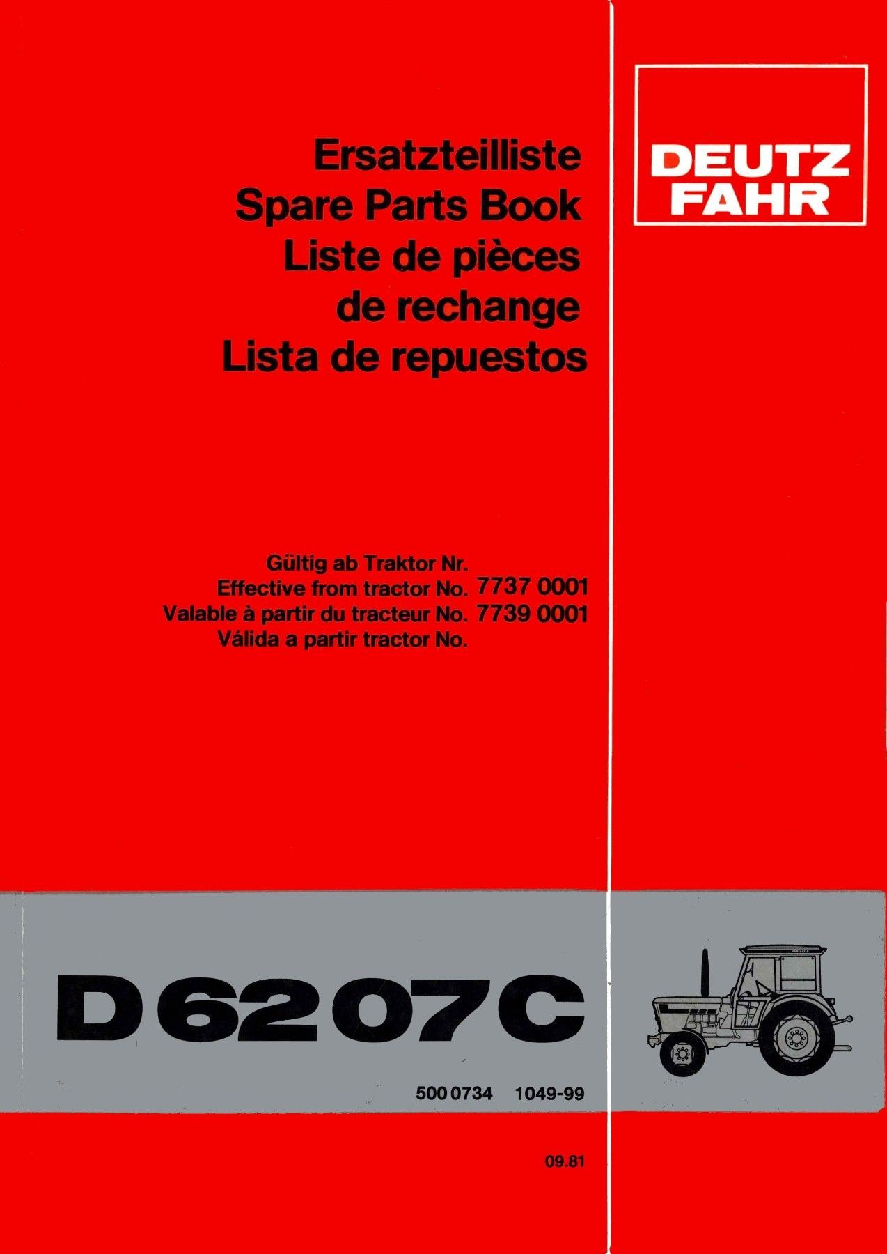 Ersatzteilliste für den Deutz Fahr Traktor D 6207 C (500 0734 1049-99) 09.81